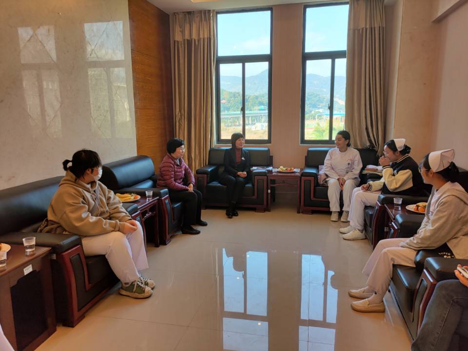 李美華親切詢問了同學們近期的學習生活情況、實習安排和困難需求,充分聽取學生的意見和建議。