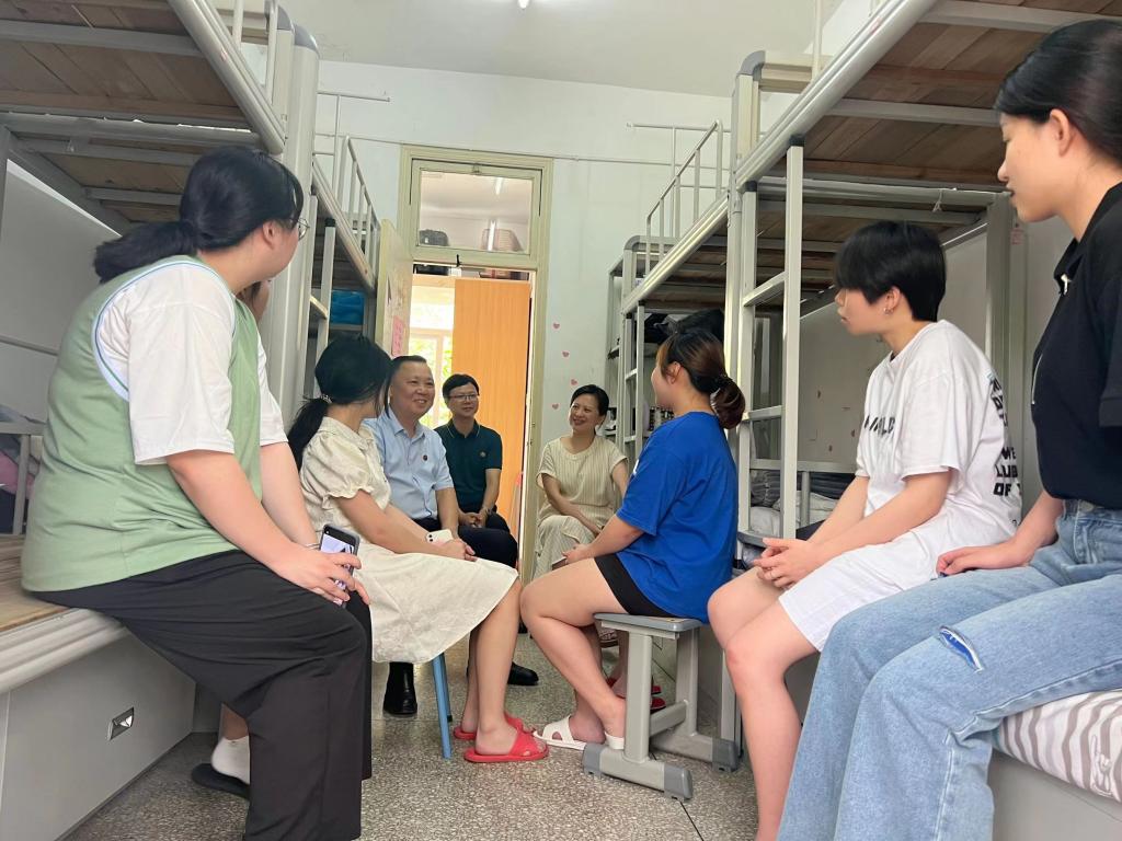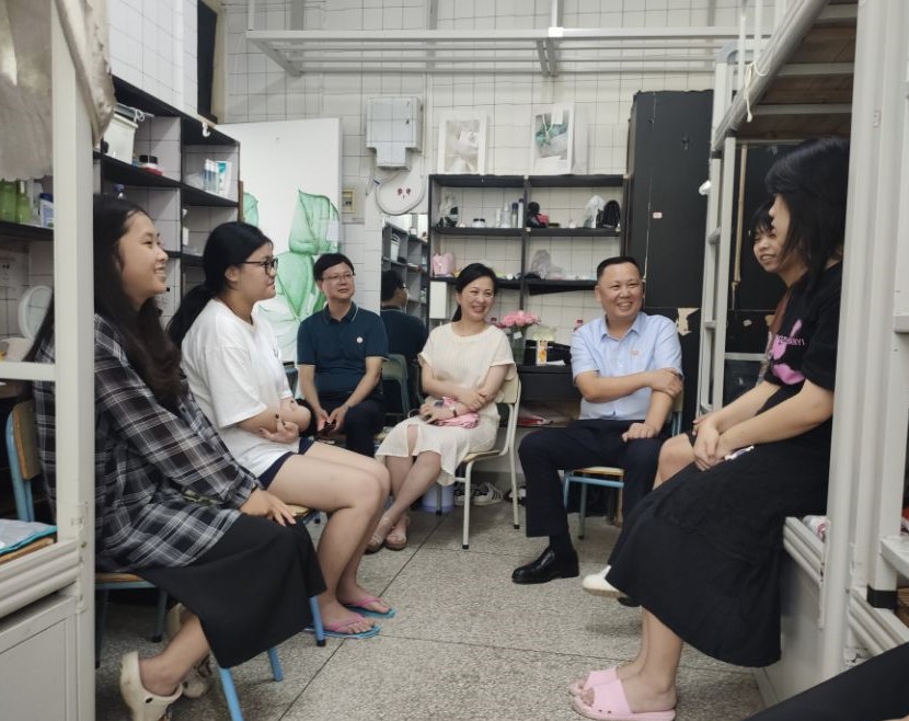 6月22日下午,校黨委書記曾武祈深入健康管理系學(xué)生宿舍,走訪看望2022屆畢業(yè)生,與健康管理系預(yù)防醫(yī)學(xué)、醫(yī)學(xué)美容技術(shù)等專業(yè)部分畢業(yè)生代表進(jìn)行座談,表達(dá)學(xué)校對畢業(yè)生們的深切關(guān)懷和美好祝愿。學(xué)生工作部部長陳俊穎、健康管理系黨總支書記葉海陪同走訪。
