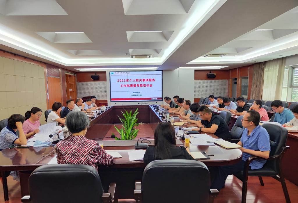 為進一步做好2023年個人有關(guān)事項填報工作,貫徹落實省委組織部、省委教育工委相關(guān)工作要求,6月13日上午,我校召開領(lǐng)導(dǎo)干部個人有關(guān)事項填報工作部署暨專題培訓會,會議由黨委副書記李美華主持,副處級以上領(lǐng)導(dǎo)干部共27人參加培訓。