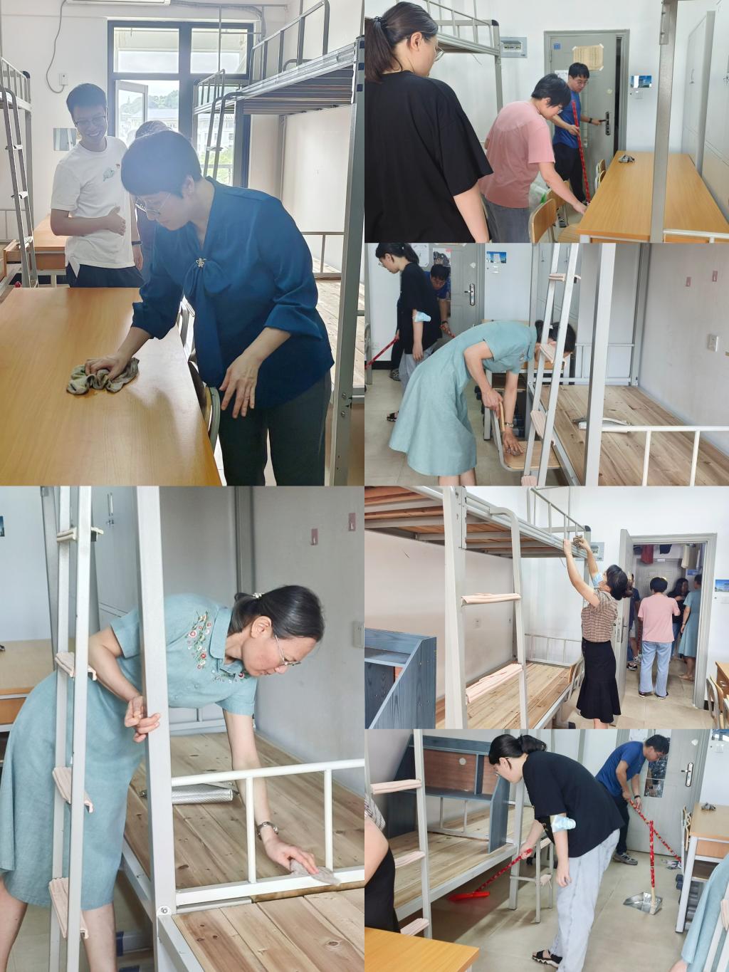 活動中,學生黨支部黨員同志們以身作則率,自帶清潔工具,大家積極參與,相互配合,發(fā)揚不怕臟、不怕累的優(yōu)良作風,逐一對新生宿舍地面、桌面、陽臺進行了認真清掃,確保不遺漏任何一個角落。在做好衛(wèi)生清潔之際,師生黨員還仔細檢查宿舍內(nèi)桌椅、門窗等硬件設施,對可能存在的安全隱患進行排查,為新生順利入學保駕護航。在大家的齊心協(xié)力下,地面變得干凈整潔,灰塵、垃圾一掃而空,宿舍面貌煥然一新。