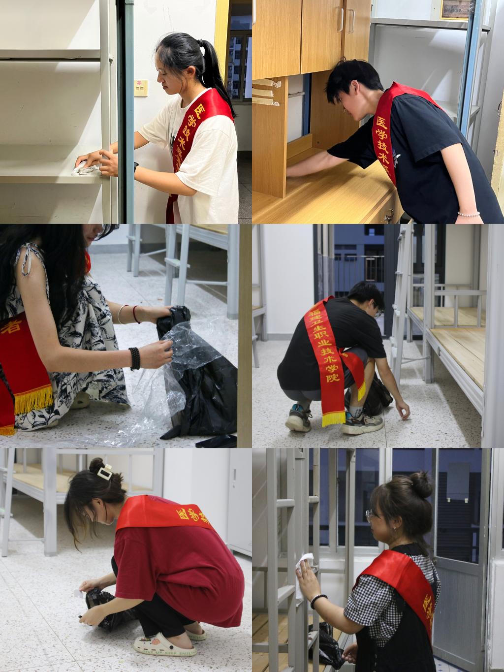 秋陽朗照,秋風送爽。為落實學校迎新工作安排,充分發(fā)揮師生黨員的先鋒模范作用,創(chuàng)建干凈、整潔的宿舍環(huán)境,切實保障廣大同學身體健康。9月11日下午,在醫(yī)學技術(shù)系黨總支的統(tǒng)一組織下,學生第一、第二黨支部帶領系團學干部以及40余名志愿者,深入新生寢室開展衛(wèi)生打掃工作,以實際行動迎接2023級新生入學。醫(yī)學技術(shù)系黨總支書記柯瓊鶯、黨總支副書記林燕、各學生支部書記等參加活動。