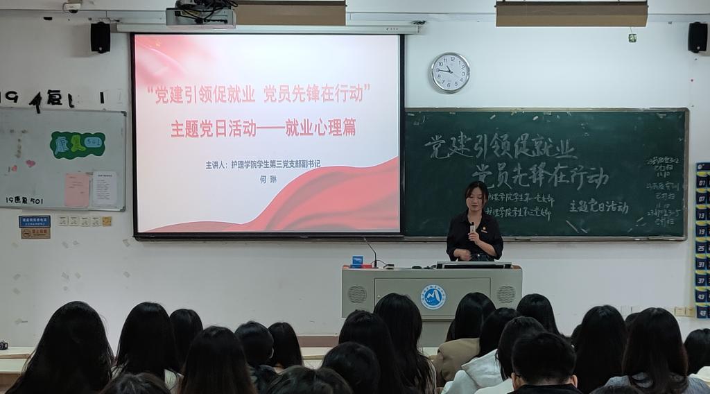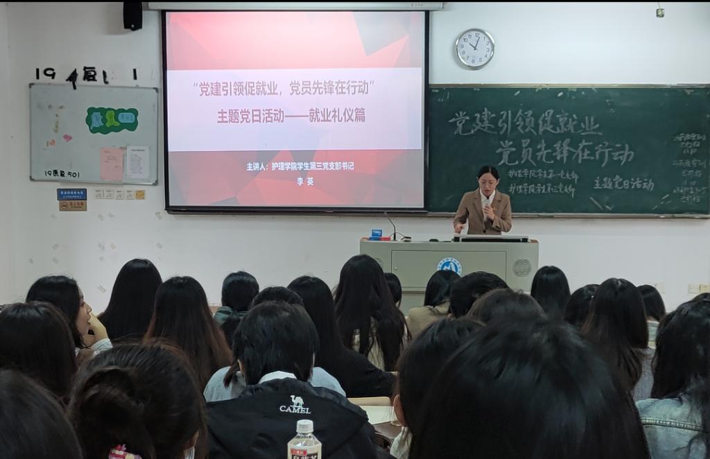 為扎實(shí)推進(jìn)主題教育學(xué)習(xí)成果轉(zhuǎn)化為就業(yè)育人的強(qiáng)大動力和實(shí)際成效,促進(jìn)“黨建+就業(yè)”深度融合,強(qiáng)化黨員教師的服務(wù)意識,近日,護(hù)理學(xué)院學(xué)生第一黨支部與學(xué)生第三黨支部聯(lián)合開展“黨建引領(lǐng)促就業(yè),黨員先鋒在行動”主題黨日活動,做到就業(yè)指導(dǎo)早謀劃、早部署、早行動,使學(xué)生在就業(yè)指導(dǎo)中感受到黨建的力度、效度與溫度。