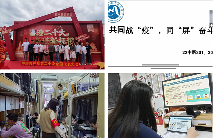 學(xué)生黨支部全體輔導(dǎo)員,堅(jiān)守學(xué)生管理工作一線,落實(shí)各項(xiàng)防控措施,保障學(xué)生安全。