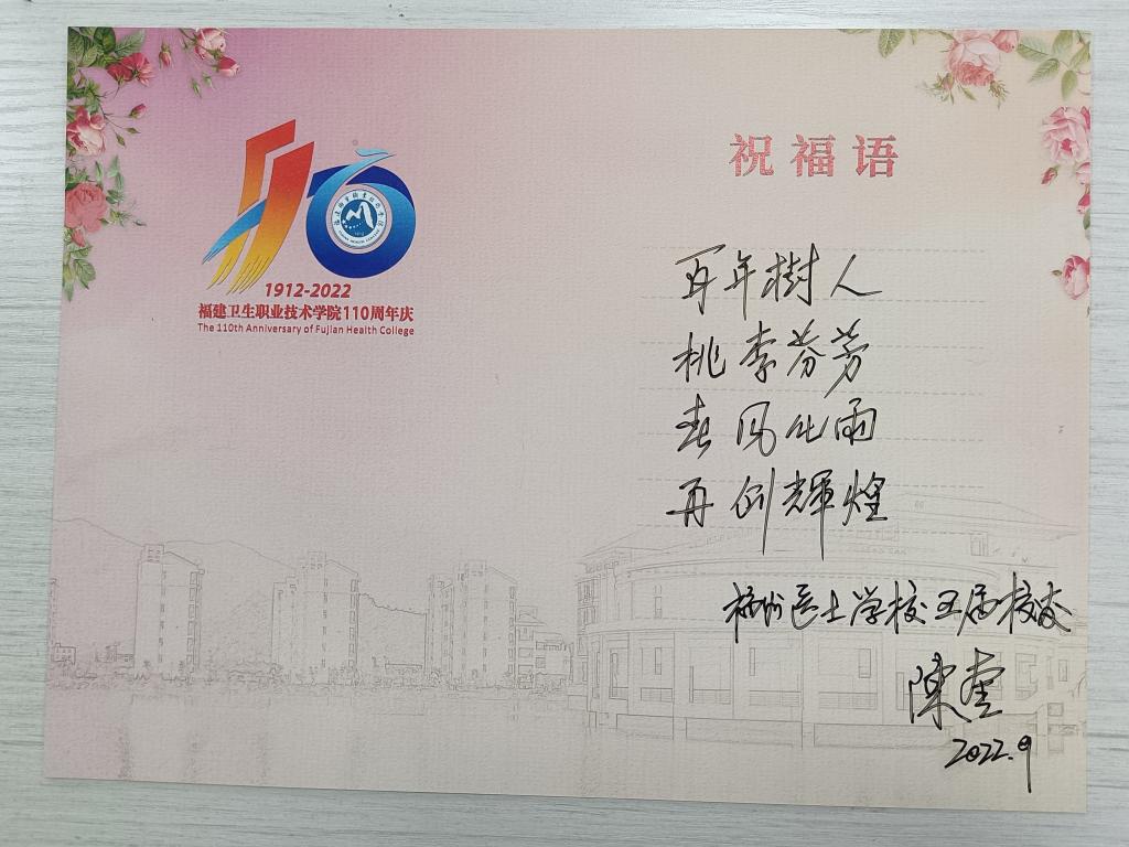 臨別之際,陳奎校友向?qū)W校一行贈(zèng)送了他親自牽頭編著的《0-3歲兒童早期發(fā)展指導(dǎo)——育兒寶典》,并手書母校110周年校慶祝福語(yǔ):百年樹人,桃李芬芳。春風(fēng)化雨,再創(chuàng)輝煌!