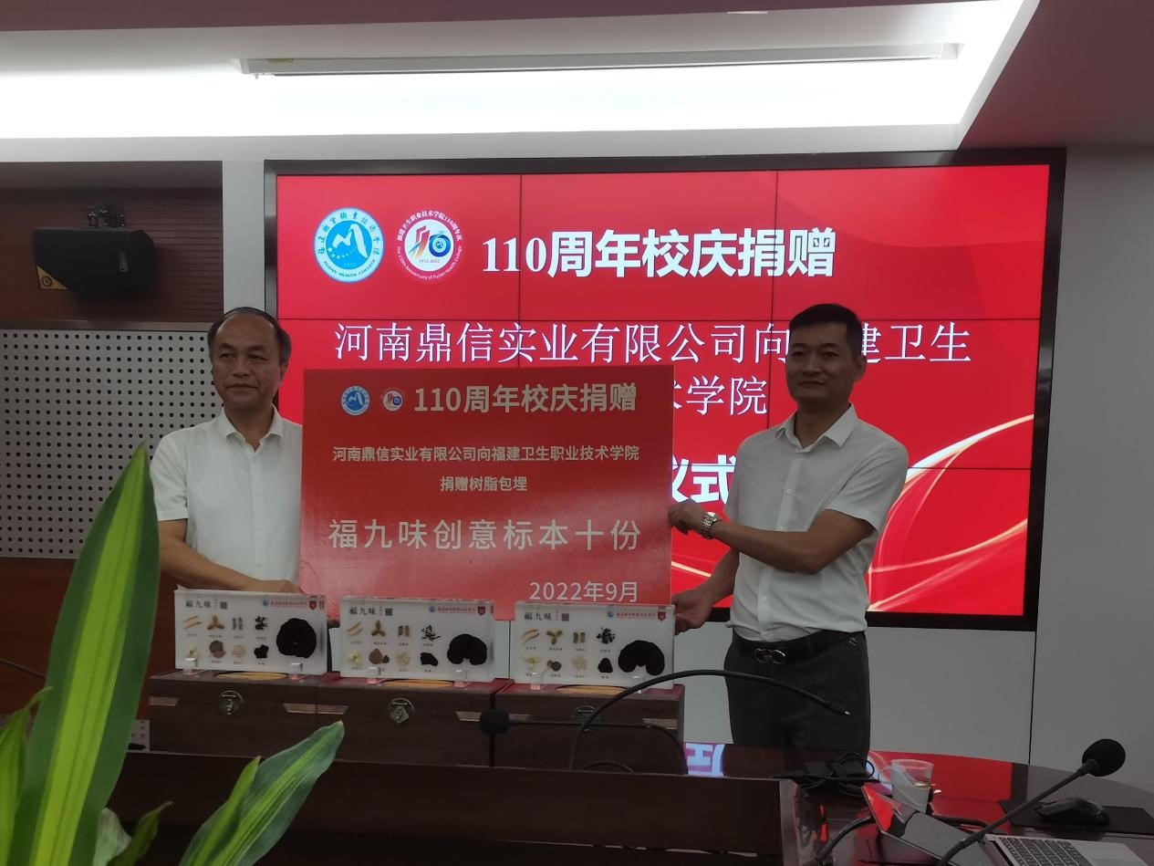 值此校慶到來之際,結(jié)合藥學(xué)院創(chuàng)意,河南鼎信實業(yè)有限公司對“福九味”進(jìn)行精心研發(fā),設(shè)計出福建衛(wèi)生職業(yè)技術(shù)學(xué)院專屬“福九味”包埋標(biāo)本并無償捐獻(xiàn)我校,助力學(xué)校藥學(xué)專業(yè)群建設(shè)和發(fā)展,讓師生感受到了社會各界對學(xué)校教育事業(yè)的關(guān)心與支持。
