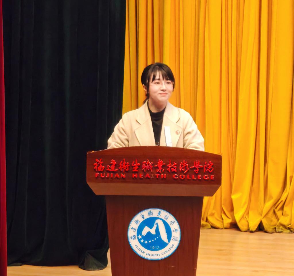 2025級醫(yī)學檢驗專業(yè)學生蔡惠超作為新生代表發(fā)言。他回顧了中專階段在母校打下的專業(yè)基礎,并呼吁全體新生既要深耕醫(yī)學理論知識,更要錘煉實踐操作能力,在協同共進中傳承醫(yī)者仁心。