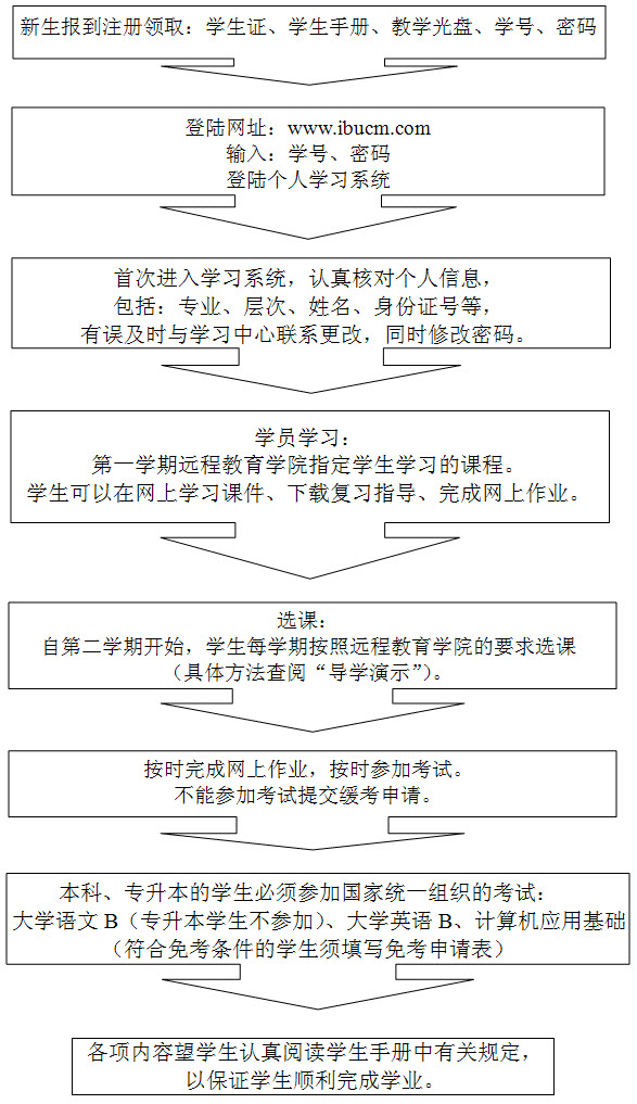 北京中醫(yī)藥大學(xué)遠(yuǎn)程教育學(xué)院學(xué)生學(xué)習(xí)流程