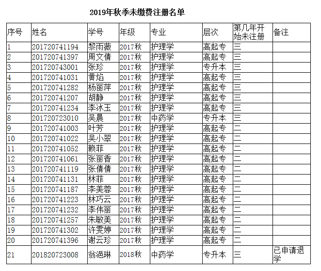 北京中醫(yī)藥大學(xué)遠(yuǎn)程教育2017級(jí)——2018級(jí)秋季未按規(guī)定繳費(fèi)注冊(cè)名單公示