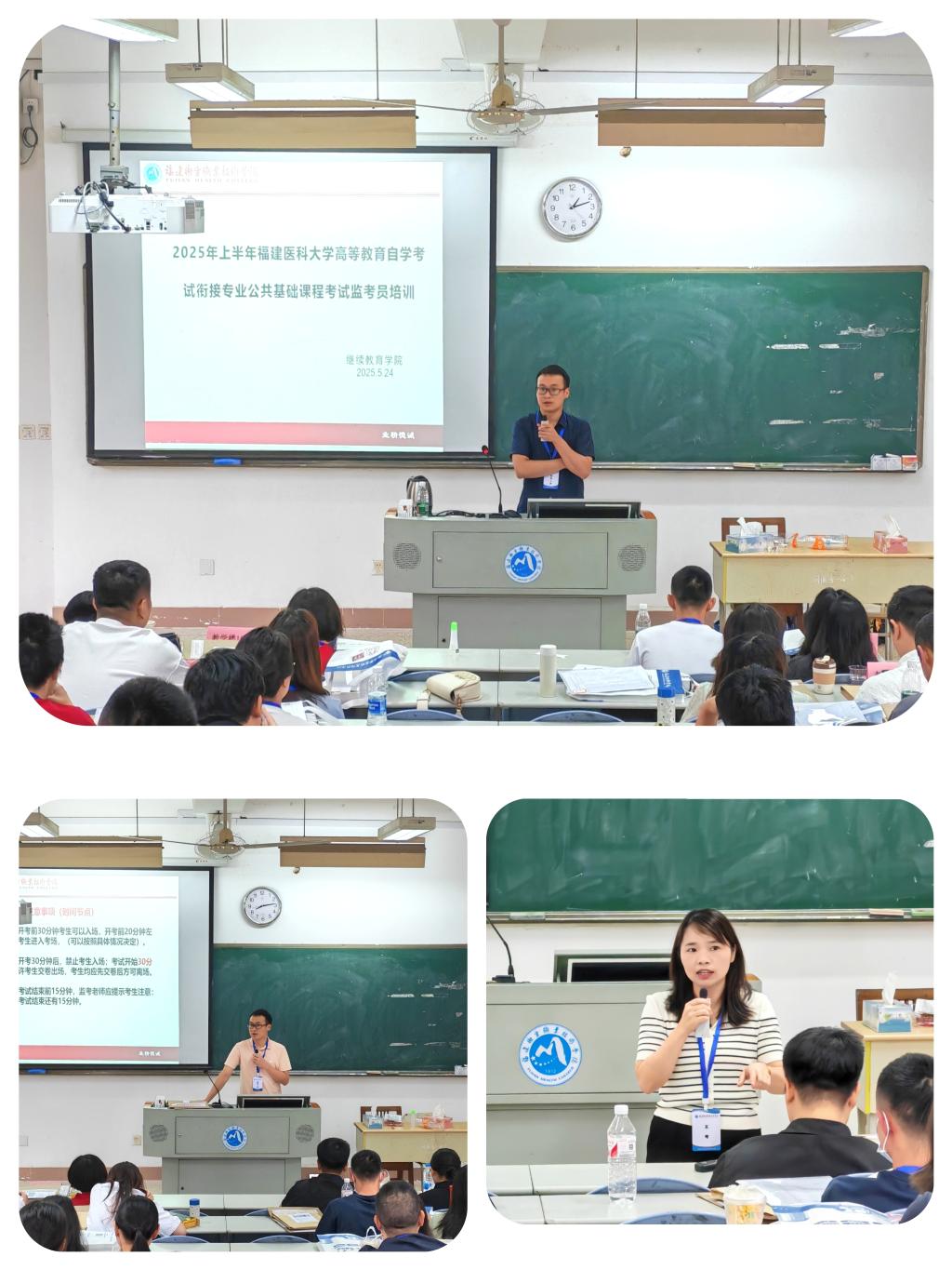 根據(jù)《福建醫(yī)科大學(xué)2025年5月高等教育自學(xué)考試公共基礎(chǔ)課程考試報名通知》,我校積極組織考生報名、繳費(fèi),協(xié)調(diào)相關(guān)處室周密部署,做好考前準(zhǔn)備工作。為保障考試公平有序,繼續(xù)教育學(xué)院細(xì)化工作措施:一是開通線上考場查詢系統(tǒng),便于學(xué)生實時獲取考場信息;二是開展監(jiān)考人員業(yè)務(wù)培訓(xùn),加強(qiáng)考務(wù)規(guī)范;三是考前一周開展考生誠信應(yīng)考教育,強(qiáng)化考風(fēng)考紀(jì)。