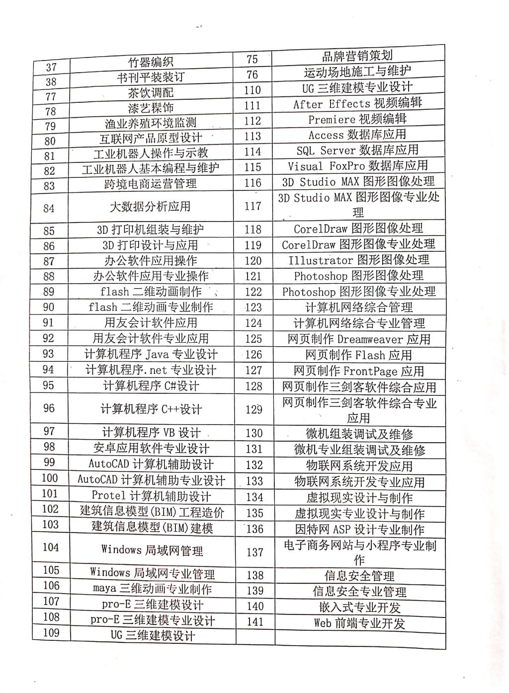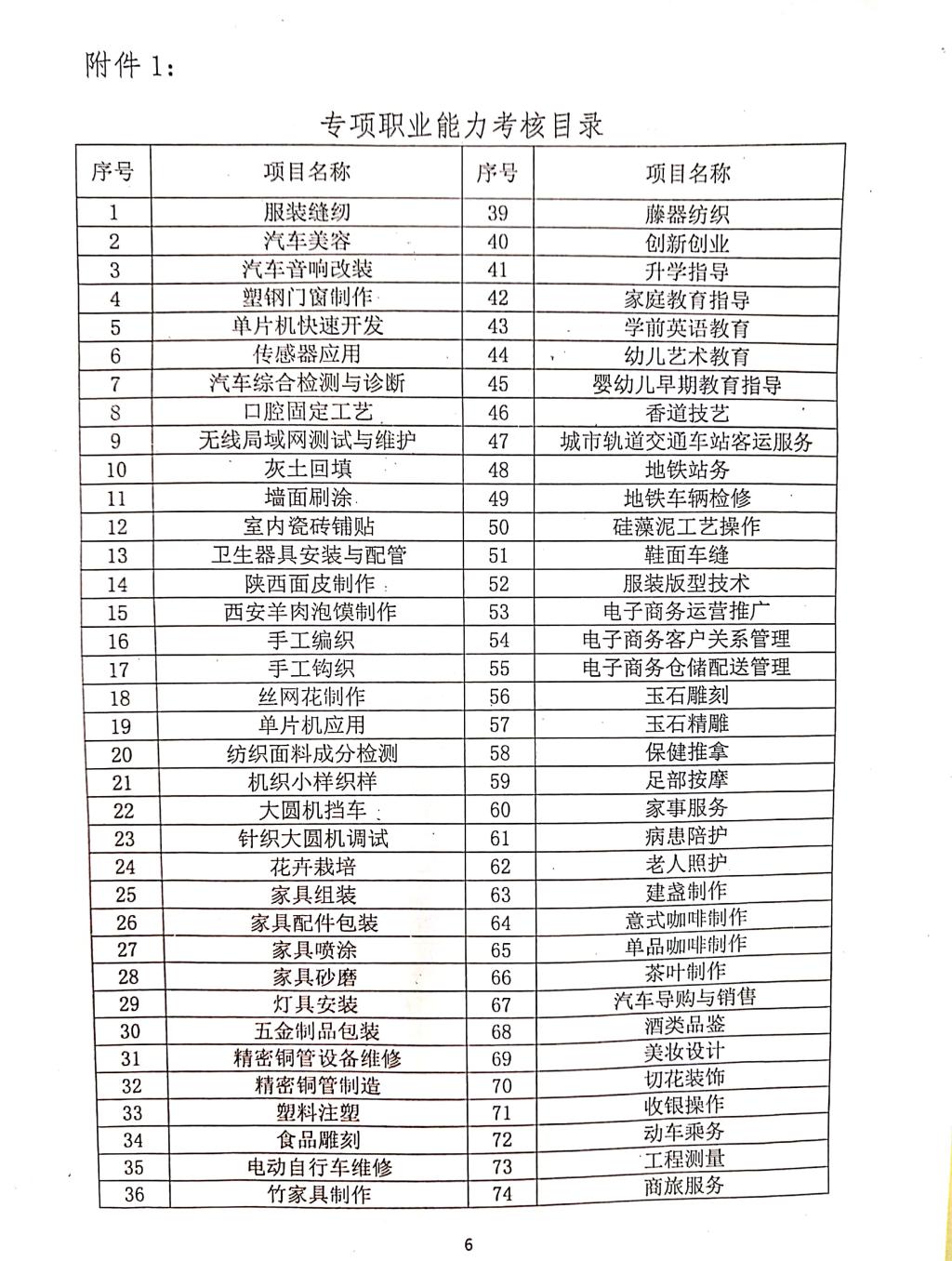 專項職業(yè)能力考核目錄