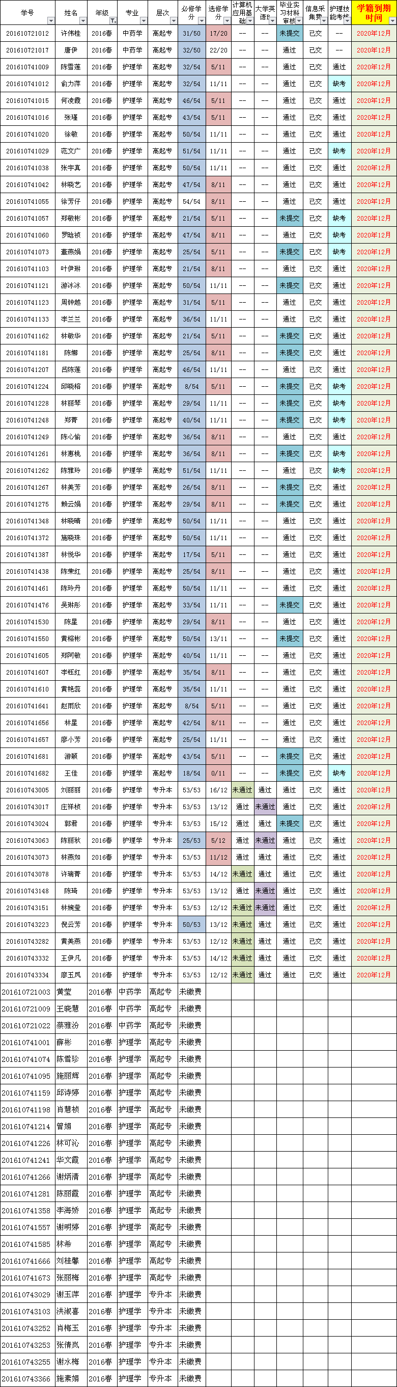 經(jīng)審核,截止2020年12月,2016春部分學(xué)生(見附件)還未達(dá)到畢業(yè)條件,主要有以下幾種情況: