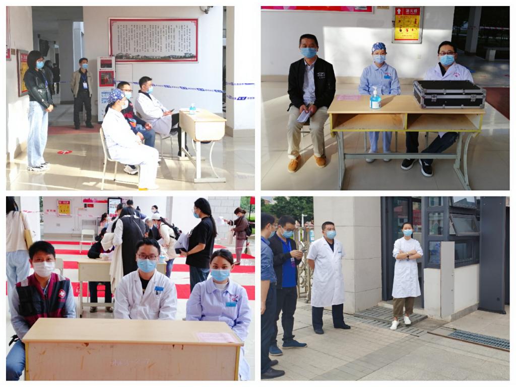 學(xué)校領(lǐng)導(dǎo)與國家、省、市衛(wèi)健委巡視員現(xiàn)場交流、巡查考場