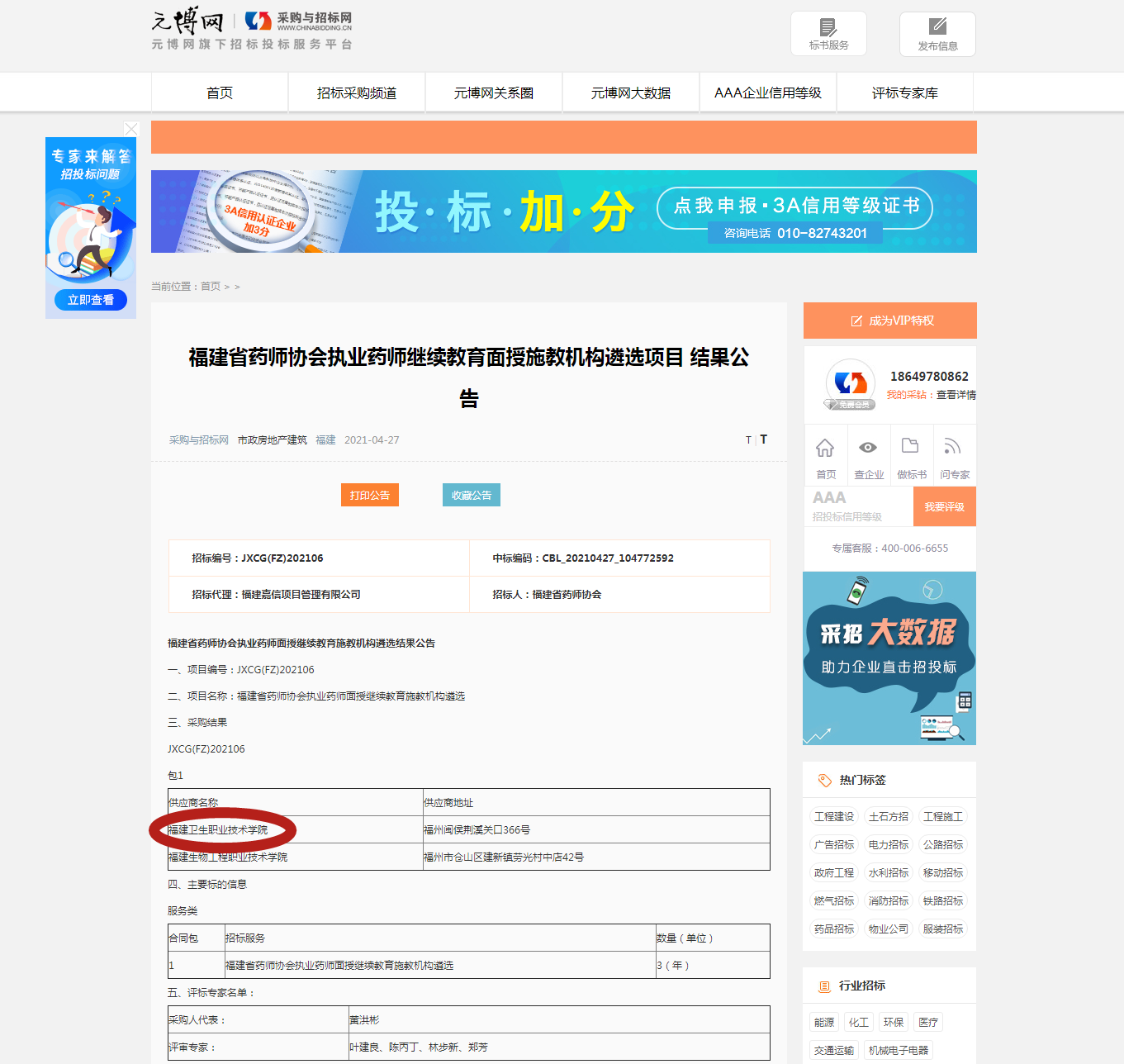 近日,福建省藥師協(xié)會執(zhí)業(yè)藥師繼續(xù)教育面授施教機構(gòu)遴選項目結(jié)果公告,我校憑借突出的辦學(xué)條件、雄厚的教學(xué)實力以及良好的市場信譽,得到福建省藥師協(xié)會和評標專家的認可,在眾多競爭對手中脫穎而出,以評分第一的成績中標福建省藥師協(xié)會執(zhí)業(yè)藥師繼續(xù)教育面授施教機構(gòu)。這是我校首次以投標人的身份參與行業(yè)培訓(xùn)機構(gòu)項目遴選。此次項目中標給我校今后參與行業(yè)培訓(xùn)項目遴選積累了寶貴的經(jīng)驗。