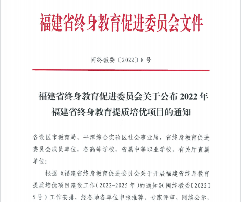 喜報(bào) | 全部入選!我校成功入選2022年福建省終身教育提質(zhì)培優(yōu)項(xiàng)目
