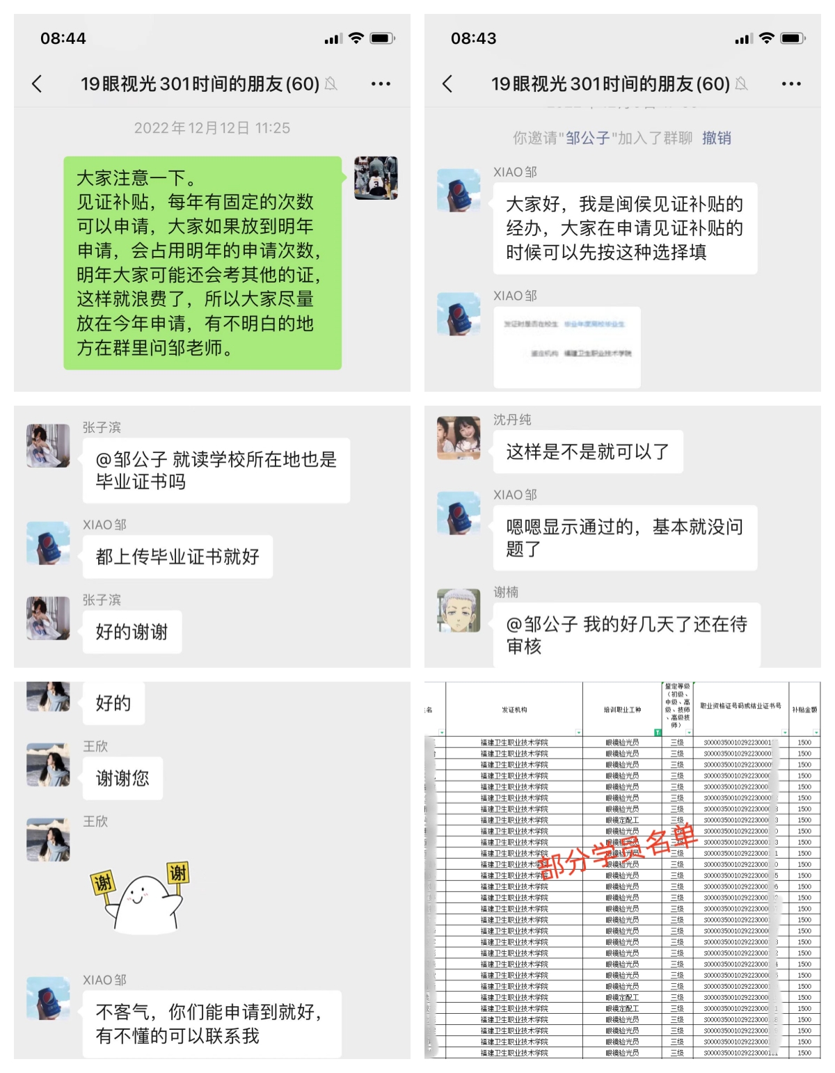 據(jù)悉,以往應(yīng)屆畢業(yè)生“見(jiàn)證補(bǔ)貼”資金申領(lǐng)需前往戶(hù)籍所在地人社局申請(qǐng),且各地補(bǔ)貼資金申領(lǐng)政策差異較大、申請(qǐng)程序繁瑣等原因大大降低了學(xué)生的申請(qǐng)意愿。我校在了解情況后,由繼續(xù)教育學(xué)院聯(lián)合醫(yī)學(xué)技術(shù)系成立眼視光專(zhuān)業(yè)學(xué)生“見(jiàn)證補(bǔ)貼”工作專(zhuān)班,創(chuàng)建微信服務(wù)工作群,并邀請(qǐng)閩侯縣人社局審核專(zhuān)員入群指導(dǎo)。針對(duì)學(xué)生提出的各項(xiàng)問(wèn)題閩侯縣人社局給予了悉心指導(dǎo),解決學(xué)生在證書(shū)補(bǔ)貼申領(lǐng)流程上的諸多疑問(wèn),大大提升了申領(lǐng)效率,打通證書(shū)補(bǔ)貼資金申領(lǐng)“最后一公里”。截至目前,我校共有126名學(xué)生成功申領(lǐng)補(bǔ)貼,三級(jí)證書(shū)(高級(jí))每人可領(lǐng)取補(bǔ)貼1500元,合計(jì)補(bǔ)助金額189000元。