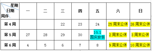1、藍色區(qū)域為法定假日當天放假,黃色區(qū)域為周末正常雙休,其余時間正常上課。