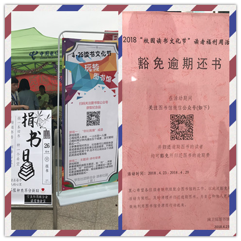 讀者協(xié)會在捐書區(qū)號召并接收全院師生捐贈的圖書,更有“讀書福利周”——全部歸還超期圖書可豁免罰款、圖書漂流等活動。