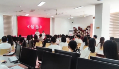“這是一聲砸向舊世界的錘頭撞擊,合著十月革命驚天霹靂!”圖書館二樓電子閱覽室里傳出了慷慨激昂的青春呼聲,學(xué)生朗誦《信念》,拉開了主題黨日活動的序幕。同學(xué)們聲情并茂的演繹,向師生黨員們講述著中國共產(chǎn)黨人征途漫漫的信仰之旅,將不同時(shí)期的中國故事通過朗誦傳遞給每位師生黨員,激發(fā)師生黨員們的民族自豪感和自信心。