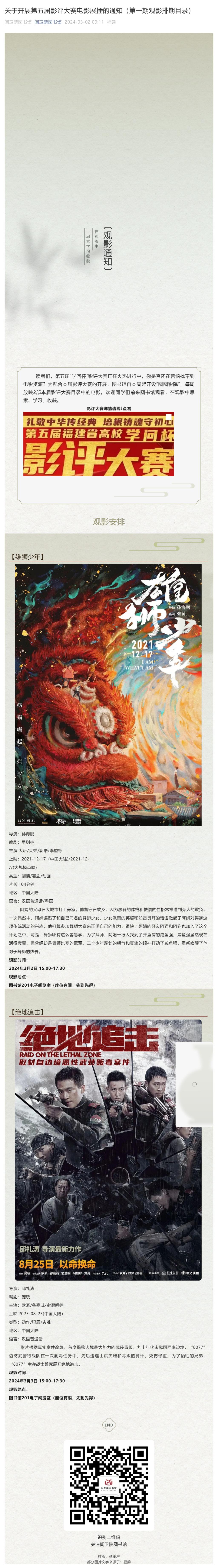 關(guān)于開展第五屆影評(píng)大賽電影展播的通知(第一期觀影排期目錄)