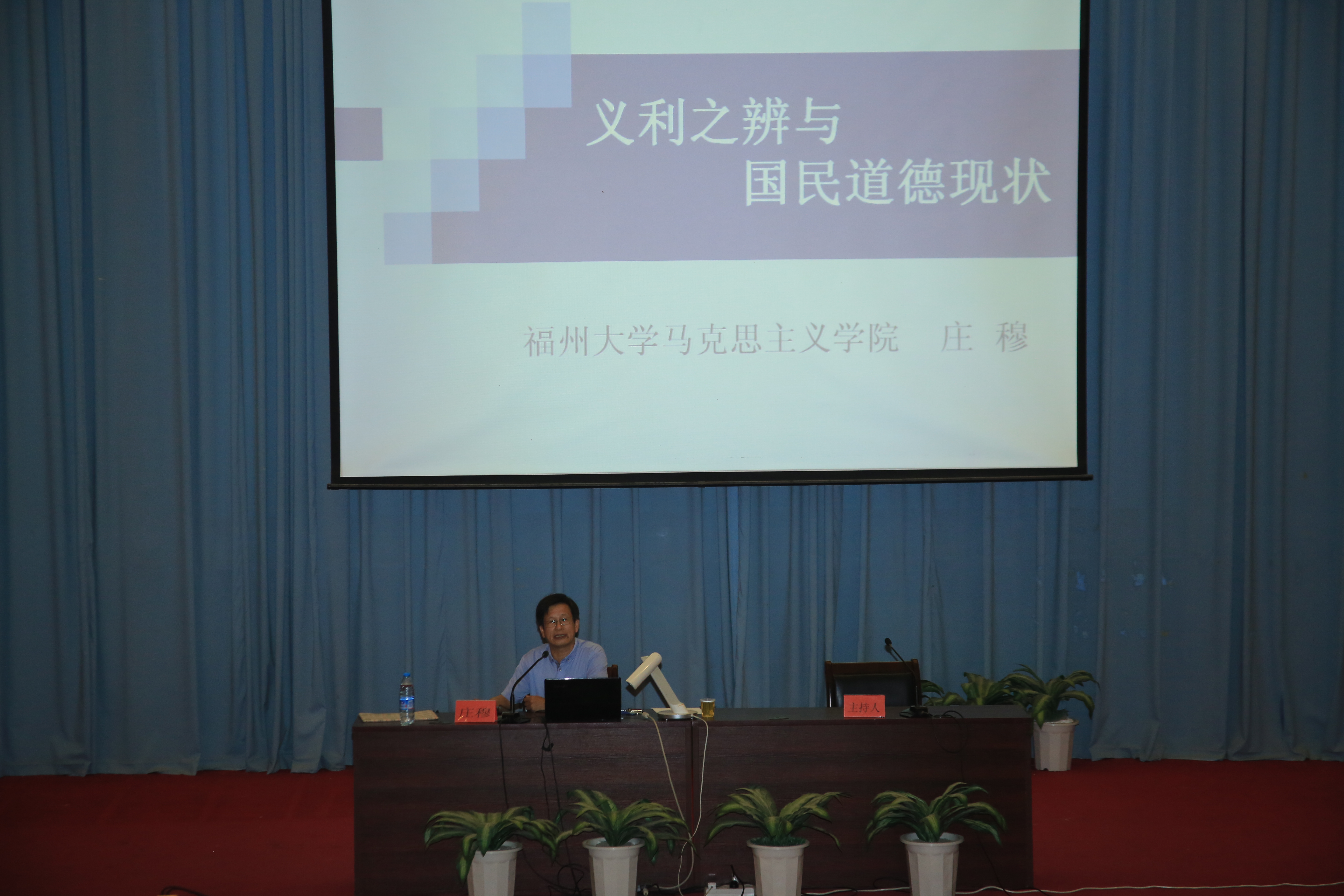 2013年10月15日下午,全國科學(xué)技術(shù)與社會(huì)研究會(huì)副理事長、福建省高校思想政治理論教學(xué)研究會(huì)副會(huì)長、福州大學(xué)馬克思主義學(xué)院院長暨碩士生導(dǎo)師莊穆教授應(yīng)邀為我院師生做了題為《義利之辯與國民道德現(xiàn)狀》的專題講座。我院師生400多人齊聚學(xué)術(shù)廳聆聽了講座。