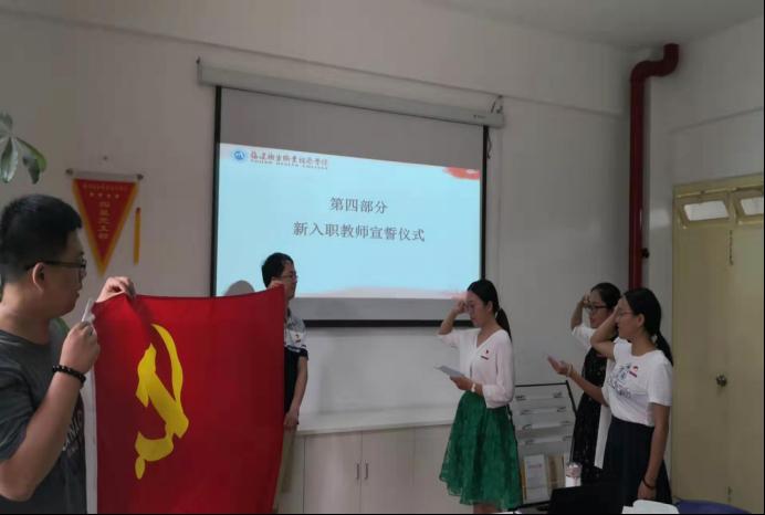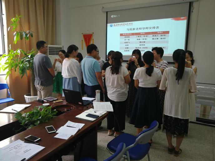 隨后,馬院全體教師在師德承諾書做出了鄭重的許諾,新入職教師面對黨旗進行了莊嚴的宣誓。為促進新教師更好成長,馬院精心遴選了教學(xué)和科研工作經(jīng)驗豐富的教師作為導(dǎo)師幫扶指導(dǎo)新教師,現(xiàn)場舉行了簡單而隆重的拜師儀式,致力完成1年內(nèi)的“5個一”成長計劃,即至少精上一門主干課、聽一門課、開一次馬院公開課、參與一項課題、撰寫一篇工作心得;3年內(nèi)至少完成“5個一”成長計劃,即講好一門主干課、發(fā)表一篇C刊論文、作為主要完成人完成一項課題、參加一次校級及以上教學(xué)比賽、進行一次學(xué)術(shù)交流,充分發(fā)揮成長導(dǎo)師的傳幫帶作用,全方位引領(lǐng)和幫助新上崗教師成長。隨后,根據(jù)黨和國家對思想政治理論課教師的要求,與會人員對我院思政課教師宣誓詞(征求意見稿)進行熱烈探討。