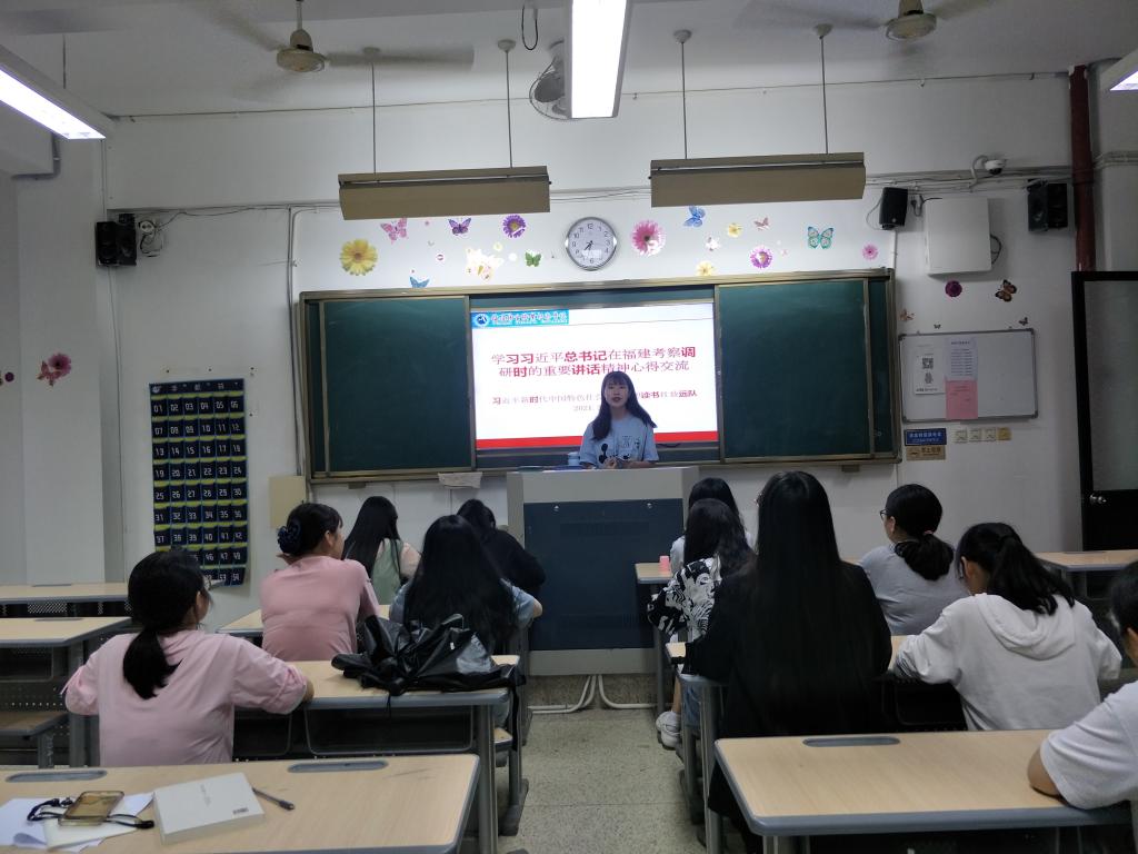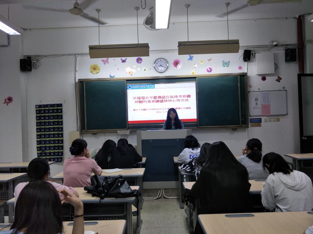 活動上,江洪老師首先簡要介紹了3月22日至25日,習(xí)近平總書記親臨福建考察調(diào)研的情況,指出習(xí)近平總書記在考察調(diào)研過程中發(fā)表了一系列重要講話,內(nèi)容豐富、內(nèi)涵深刻、意義深遠(yuǎn),我們要緊跟步伐,深入進(jìn)行學(xué)習(xí)研究。接著,社團(tuán)學(xué)生依次登上講臺,分享學(xué)習(xí)心得。