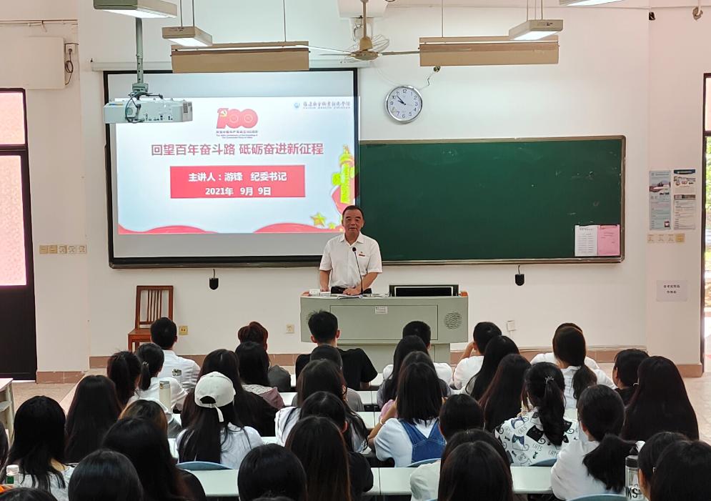 為深入學習貫徹習近平總書記在慶祝中國共產黨成立100周年大會上的重要講話精神,引領我校師生學史明理、學史增信、學史崇德、學史力行,9月8日至10日,校黨委書記曾武祈、校長許能鋒、黨委副書記李美華、紀委書記游鋒、副校長陳貞健和黃銘珊在新學期第一周紛紛走上講臺,為我校師生講授了別樣紅的“開學第一課”。
