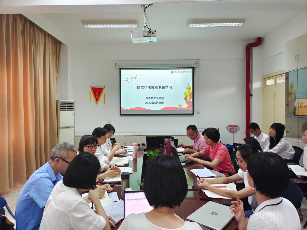 為做好2022年防范非法集資宣傳月活動,進(jìn)一步增強全校師生防范非法集資風(fēng)險意識,馬克思主義學(xué)院根據(jù)我校相關(guān)工作方案的部署要求,于6月30日開展了防范非法集資專題學(xué)習(xí)活動。