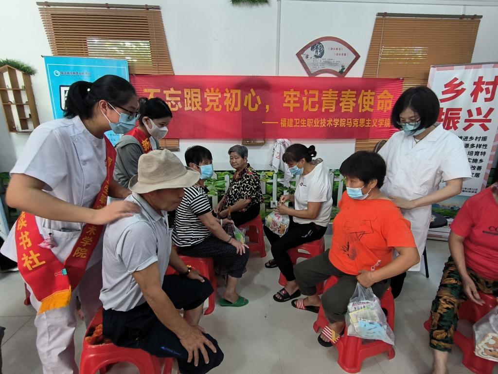 青年需要實(shí)踐的錘煉,學(xué)生在前努力的同時(shí),老師們則在背后細(xì)心指導(dǎo),徐麗鶯老師作為中醫(yī)康復(fù)方面的專家,在本次活動(dòng)中擔(dān)任了“主治醫(yī)生”的角色,為村民看診、拔罐等,為村民們提出的健康問題耐心解答。