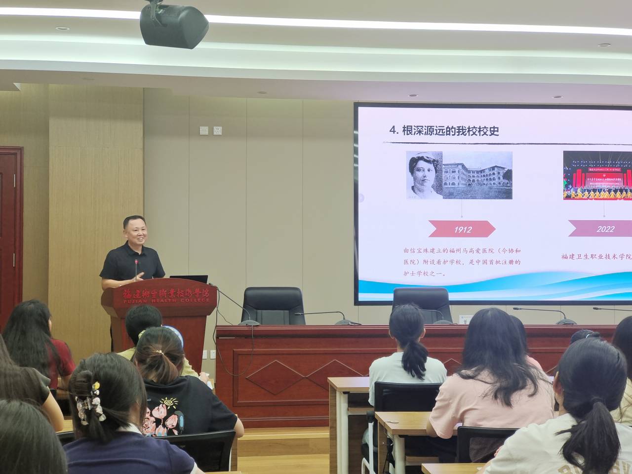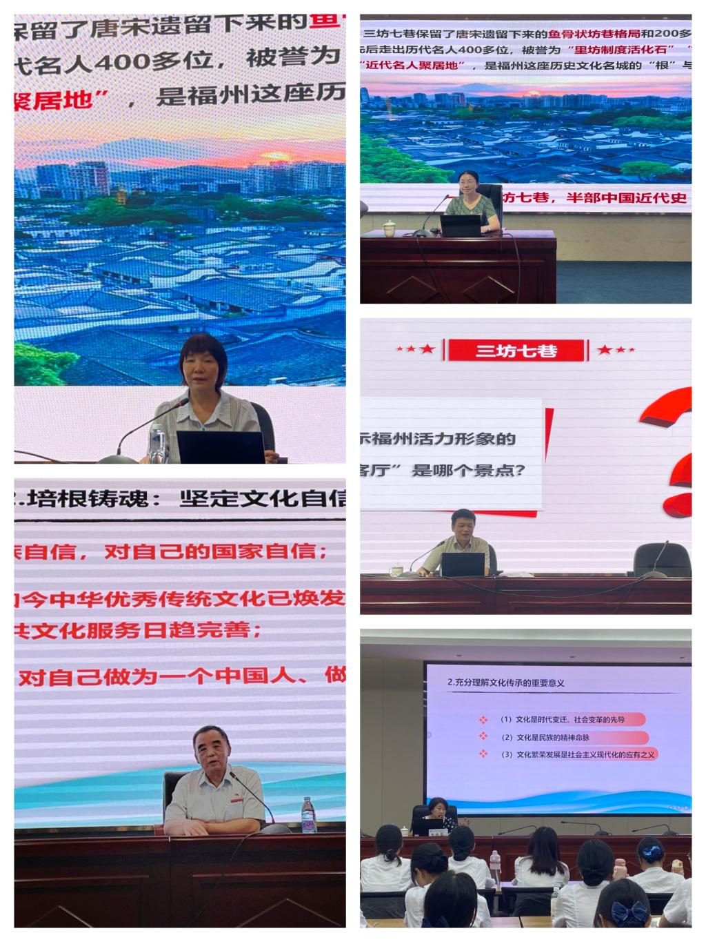 曾武祈以“賡續(xù)歷史文脈 勇?lián)鷷r(shí)代使命 共譜當(dāng)代華章”為題,鮮活地講述了一個(gè)個(gè)動(dòng)人的中華文化故事。從有著“中國(guó)城市里坊制度活化石”和“中國(guó)明清建筑博物館”美稱的“三坊七巷”,到福建省第一座依托于史前遺址的博物館“曇石山遺址博物館”,再到著名的中國(guó)古代神話傳說(shuō)“神農(nóng)辨藥嘗百草”等,在場(chǎng)師生在沉浸式的聽(tīng)覺(jué)盛宴中掌握到了中華文明的五大突出特性,領(lǐng)悟了新時(shí)代堅(jiān)持文化傳承的重要意義。曾武祈指出,只有深深植根于中華優(yōu)秀傳統(tǒng)文化的豐厚沃土,使歷史中國(guó)的深厚底蘊(yùn)與現(xiàn)實(shí)中國(guó)的嶄新氣象深相融通,才能有效推動(dòng)中華優(yōu)秀傳統(tǒng)文化的創(chuàng)造性轉(zhuǎn)化、創(chuàng)新性發(fā)展;只有不斷追根溯源,從我校百年校史中汲取精神文化命脈,才能培育出文化底蘊(yùn)更深、精神內(nèi)核更穩(wěn)的新時(shí)代醫(yī)學(xué)生。他號(hào)召閩衛(wèi)院學(xué)子真學(xué)真知真懂真做,以高度的文化自覺(jué)、深沉的文化自信、勇毅的文化擔(dān)當(dāng)肩負(fù)起新時(shí)代新的文化使命。