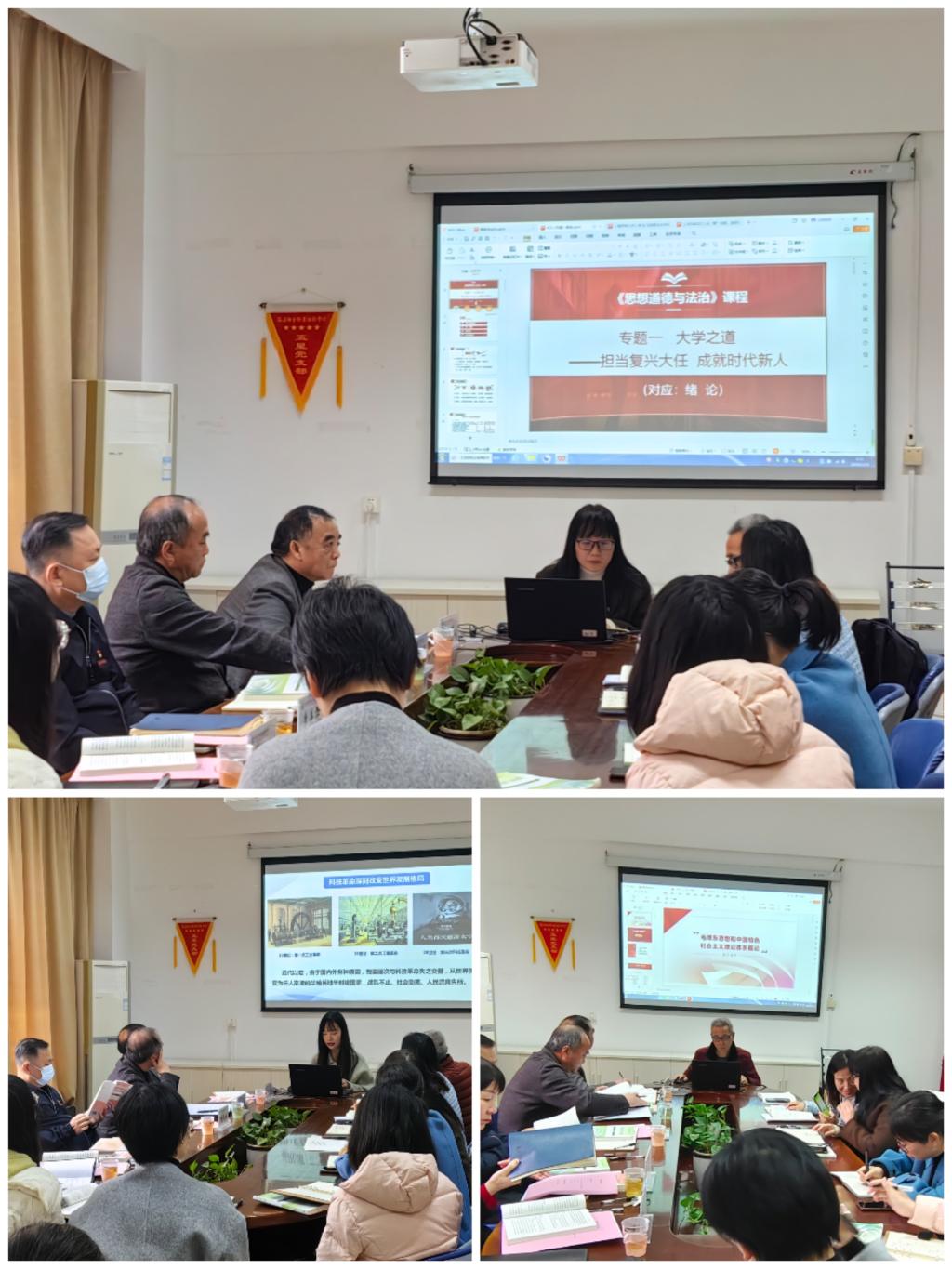 備課會上,馬克思主義學(xué)院院長熊美蘭老師展示“思想道德與法治”課程“專題一:大學(xué)之道——擔(dān)當(dāng)復(fù)興大任 成就時代新人”集備內(nèi)容,從“概述本課程教學(xué)”“簡介專題一”“學(xué)情分析”“教學(xué)實(shí)施展示”四個方面對教學(xué)設(shè)計(jì)和教學(xué)資源等作交流分享。胡濟(jì)林老師圍繞“課程中的定位”“學(xué)情分析”“教學(xué)構(gòu)思、教學(xué)內(nèi)容設(shè)計(jì)”“如何攻克教學(xué)重點(diǎn)難點(diǎn)問題”四個方面對“毛澤東思想和中國特色社會主義理論體系概論”課程“導(dǎo)論:馬克思主義中國化時代化的歷史進(jìn)程與理論成果”教學(xué)內(nèi)容進(jìn)行備課。張晨琳老師針對“形勢與政策”課程“第三講:走好新時代科技自立自強(qiáng)之路”,從“戰(zhàn)略博弈”“乘風(fēng)破浪”“勇立潮頭”“凝‘青’聚力”四個部分進(jìn)行集備展示。與會教師代表針對概念拓展、教學(xué)重難點(diǎn)分析、課堂互動的實(shí)現(xiàn)方式等進(jìn)行熱烈的研討交流。
