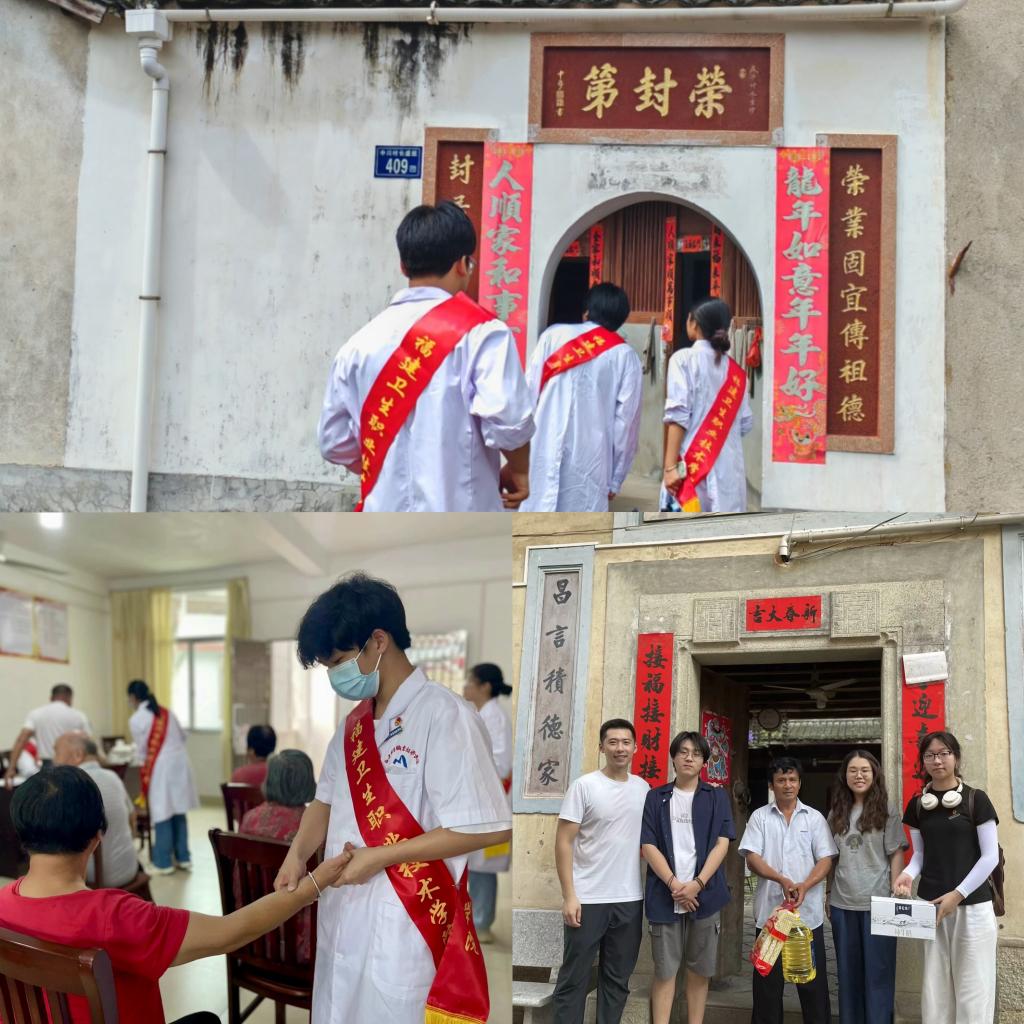 華僑愛國愛鄉(xiāng)、熱心公益、無私奉獻的精神在以胡文虎為代表的華僑龍商身上體現(xiàn)得淋漓盡致,實踐隊員們在這堂行走的“大思政課”中深受鼓舞。20名閩衛(wèi)青年化身“行走的小藥箱”,用自身所學專業(yè)知識守護村民健康,教給村民推拿的基本手法和居家護理等醫(yī)學知識,給村民帶去紅花油、板藍根等常用藥,囑咐村民科學使用藥品,讓村民真正感受到了“面對面”的醫(yī)療暖心服務(wù)。同學們還走進中川低保戶、特困村民家中,化身“暖心使者”送去油、米等慰問品。