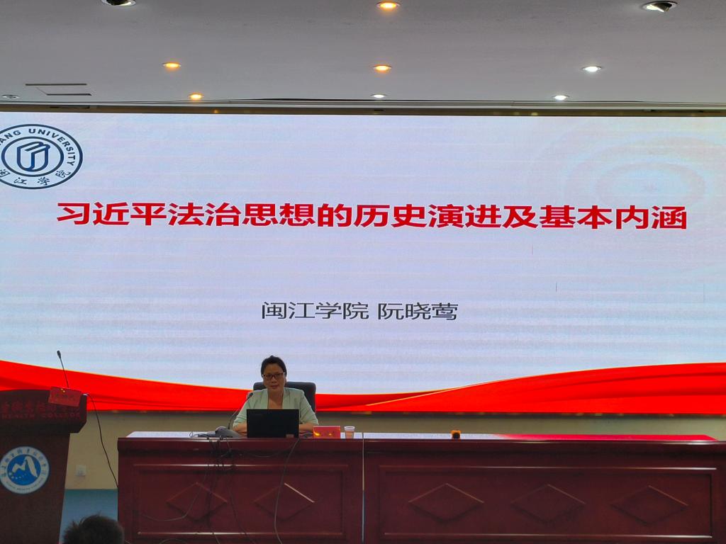 習近平法治思想是習近平新時代中國特色社會主義思想的重要組成部分,為持續(xù)推動學習貫徹習近平法治思想走深走實,2024年9月19日,馬克思主義學院邀請閩江學院法學院原院長阮曉鶯教授在篤行樓四樓報告廳開展《習近平法治思想的歷史演進及基本內(nèi)涵》專題講座。講座由馬克思主義學院院長熊美蘭主持,馬克思主義學院全體專兼課教師、學生代表參加。