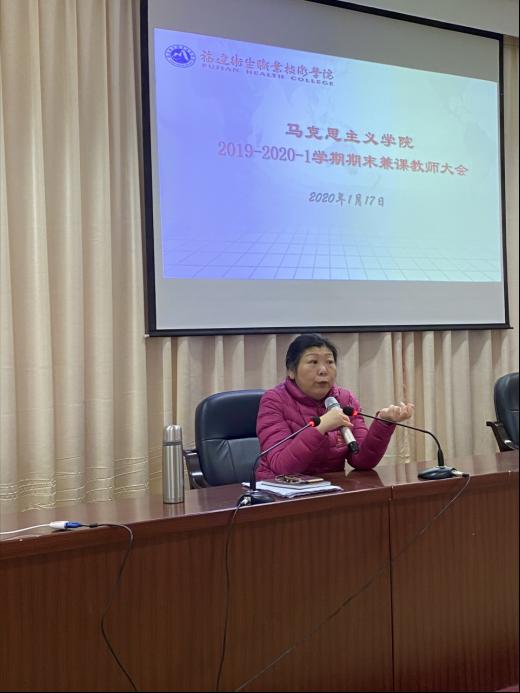 為全面提升教師教學(xué)質(zhì)量,深入貫徹落實(shí)學(xué)校思想政治理論課教師座談會(huì)、全國(guó)教育大會(huì)、全國(guó)高校思想政治工作會(huì)議精神,貫徹落實(shí)中共中央辦公廳、國(guó)務(wù)院辦公廳《關(guān)于深化新時(shí)代學(xué)校思想政治理論課改革創(chuàng)新的若干意見(jiàn)》,辦好新時(shí)代高職高專(zhuān)思想政治理論課,用習(xí)近平新時(shí)代中國(guó)特色社會(huì)主義思想鑄魂育人,發(fā)揮好思政課在高職高專(zhuān)院校立德樹(shù)人根本任務(wù)的關(guān)鍵課程作用,抓好思政課教師隊(duì)伍建設(shè),馬克思主義學(xué)院(以下簡(jiǎn)稱(chēng)“馬院”)于2020年1月17日在行政樓六樓會(huì)議室召開(kāi)馬院2019-2020-1學(xué)期期末兼課教師大會(huì),全體兼課教師參與本次會(huì)議,馬院院長(zhǎng)熊美蘭主持。