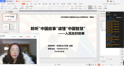 “陽春三月煙花如海,風(fēng)月無邊吟贊春秋?!卑殡S著三月份的到來,習(xí)近平新時(shí)代中國特色社會主義思想讀書社星星隊(duì)于3月3日在釘釘直播平臺,進(jìn)行了第三專題—人民友好故事的學(xué)習(xí)。這次的專題學(xué)習(xí)與前兩次不同,由星星隊(duì)員們聽楊盈老師為我們講解,變成了由同學(xué)們來做“老師”進(jìn)行講解。