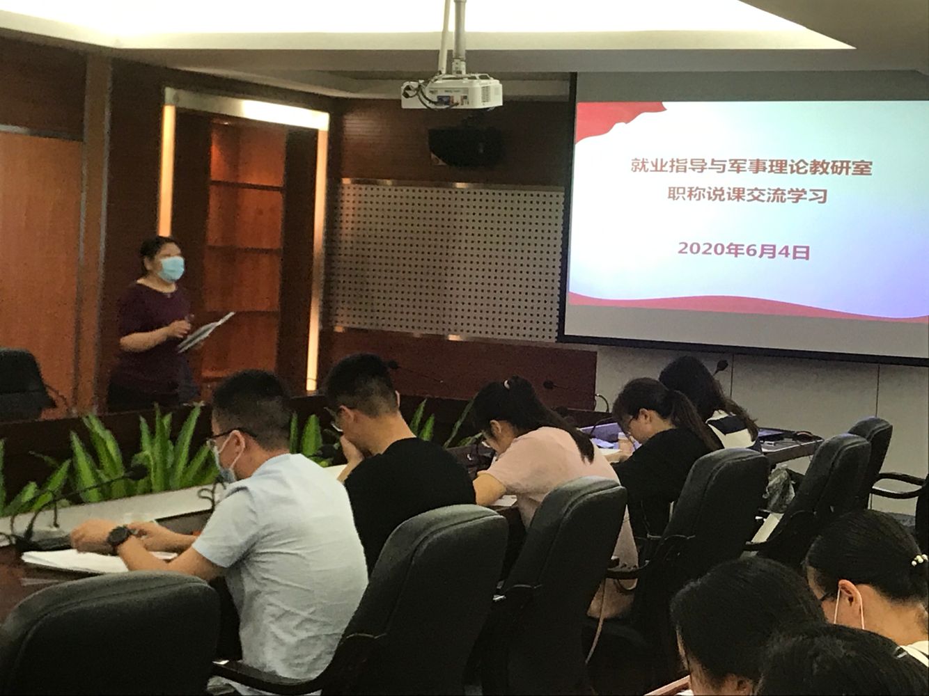 隨后,謝林輝和陳念文老師兩位老師在會上就《軍事理論》和《職業(yè)生涯和就業(yè)指導》兩門課程職稱單元說課作了交流學習。老師們聽完以后都深受啟發(fā),感慨收獲很大,為下一年的職稱說課起到了拋磚引玉的效果。