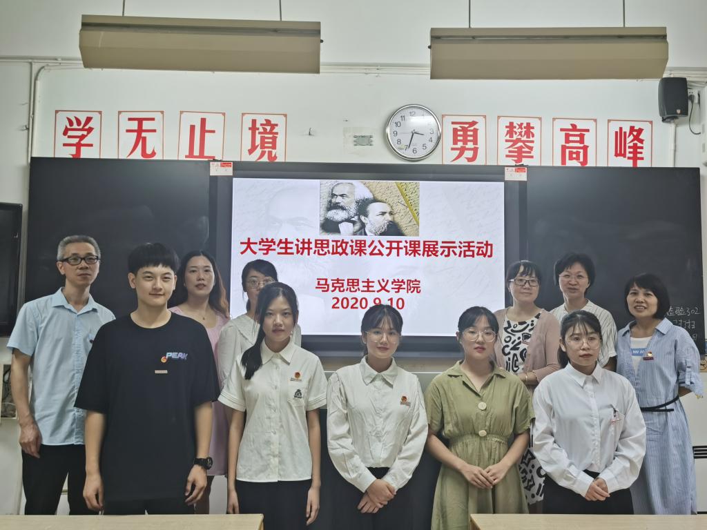 為深入貫徹落實(shí)習(xí)近平總書記關(guān)于教育的重要論述,特別是在學(xué)校思想政治理論課教師座談會(huì)上的重要講話精神,堅(jiān)持不懈用習(xí)近平新時(shí)代中國特色社會(huì)主義思想鑄魂育人,2020年9月10日下午,馬克思主義學(xué)院于教學(xué)樓102舉辦“綻放抗疫青春?決勝全面小康”——大學(xué)生講思政課公開課展示活動(dòng)?;顒?dòng)中,由5位通過初評(píng)的選手進(jìn)行現(xiàn)場(chǎng)教學(xué)展示,馬院院長(zhǎng)熊美蘭、馬院辦公室主任楊盈及各教研室主任參與聽課、評(píng)課。