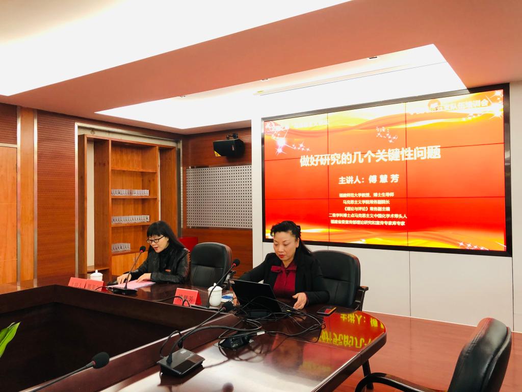 為深入學(xué)習(xí)習(xí)近平新時(shí)代中國(guó)特色社會(huì)主義思想,持續(xù)貫徹落實(shí)習(xí)近平總書(shū)記學(xué)校思想政治理論課教師座談會(huì)以及2021年兩會(huì)中關(guān)于思政課教學(xué)的相關(guān)精神,鞏固提升教師教學(xué)科研能力,2021年3月11日下午,福建師范大學(xué)教授,馬克思主義學(xué)院常務(wù)副院長(zhǎng)傅慧芳應(yīng)邀做題為“做好研究的幾個(gè)關(guān)鍵性問(wèn)題”的專(zhuān)題講座。講座由馬克思主義學(xué)院院長(zhǎng)熊美蘭主持,馬院全體專(zhuān)兼職教師參加了本次講座。