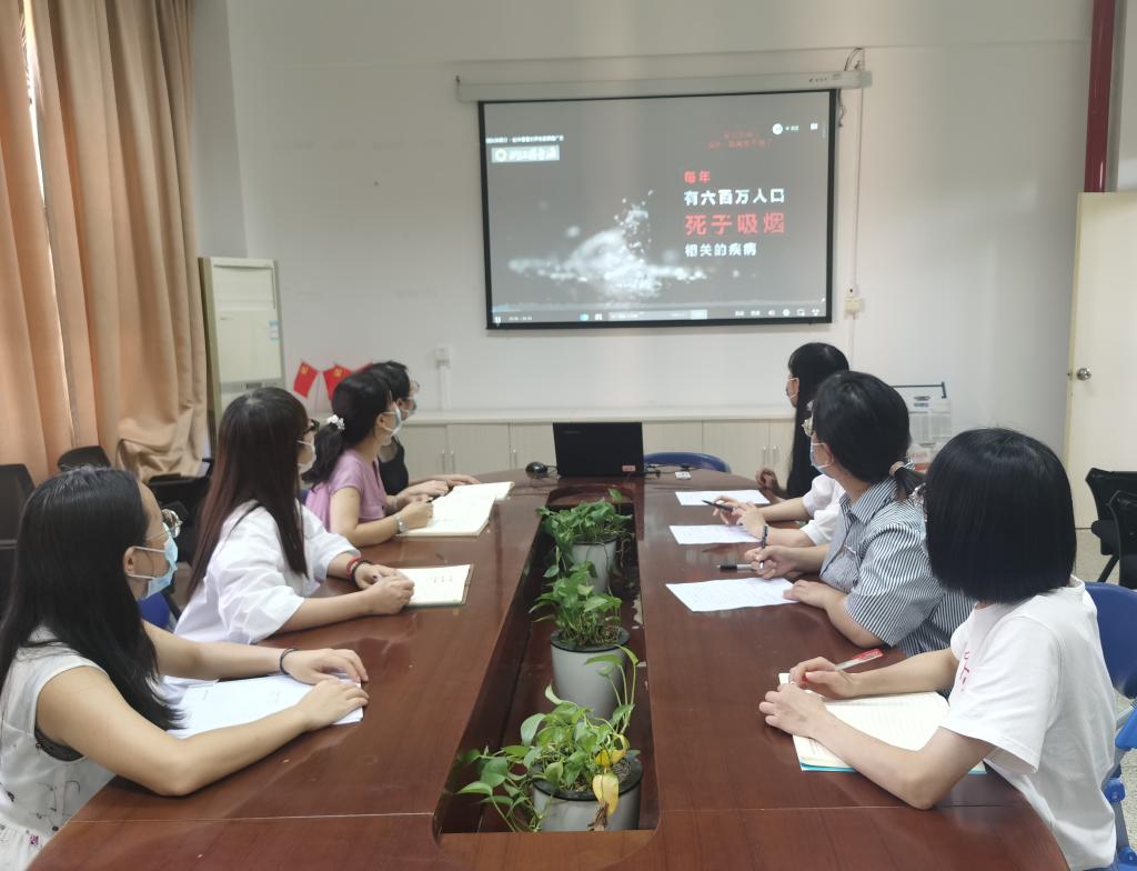 馬克思主義學院院長熊美蘭帶領(lǐng)大家觀看禁煙公益片,表示要正確認識吸煙的危害,以身作則,主動開展控煙工作,督促學院做到辦公場所全面無煙,努力創(chuàng)造優(yōu)美舒適的工作生活環(huán)境。