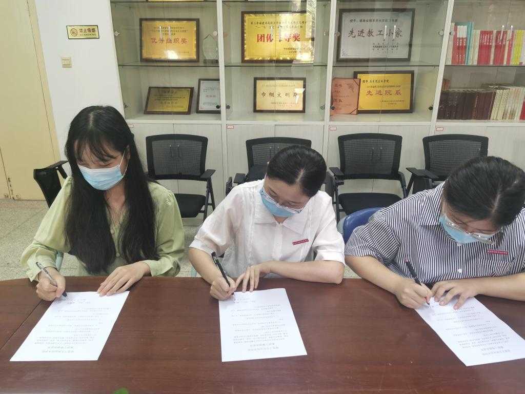 新進教職工張晨琳、楊央、曾美玲三位老師表示要積極參與控煙活動,共建文明、潔凈、優(yōu)美的校園環(huán)境,簽訂了《福建衛(wèi)生職業(yè)技術(shù)學院教職工禁煙承諾書》。