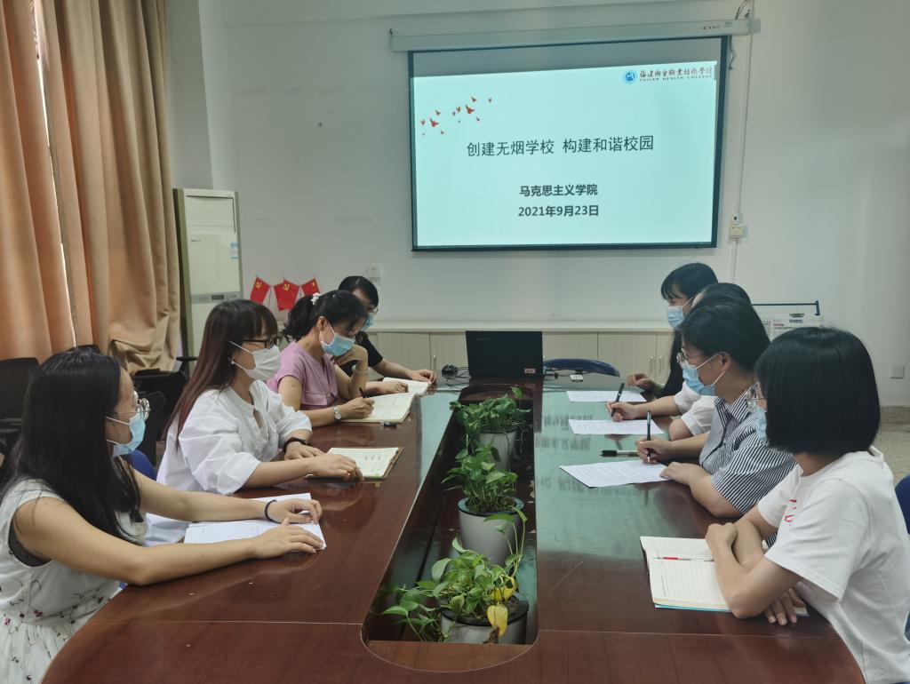 為加強教職工健康知識教育和控煙輿論宣傳,進一步提高對吸煙危害的認識,積極主動參與控煙、戒煙活動,努力營造無煙、清潔、健康、和諧的校園環(huán)境。2021年9月23日下午,馬克思主義學院全體教職工在107會議室開展禁煙學習宣傳活動。