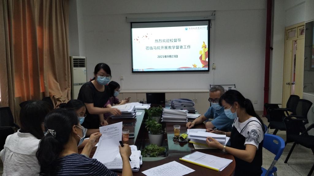 為加強(qiáng)教學(xué)質(zhì)量監(jiān)控,保證新學(xué)期的教學(xué)工作有序、有效運(yùn)行,確保學(xué)院教學(xué)工作有個(gè)良好的開端。2021年9月23日下午,校督導(dǎo)王珊珊、陳鈺兩位老師到馬克思主義學(xué)院,對2021-2022學(xué)年第一學(xué)期及上學(xué)期期末教學(xué)管理工作開展督查。馬院院長熊美蘭、副院長來朋珍、教學(xué)秘書吳薇及各教研室主任參加了此次檢查。