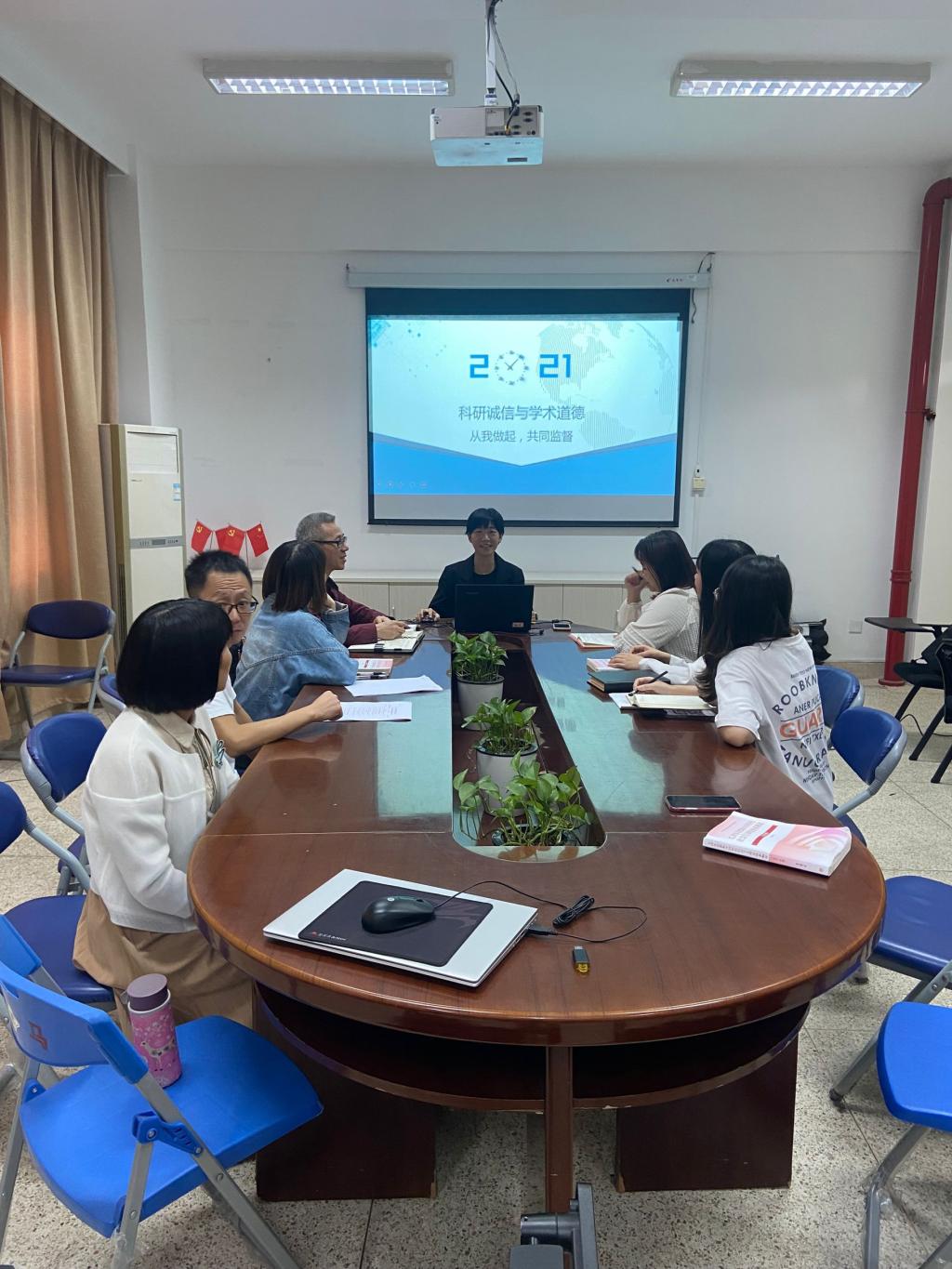 為進(jìn)一步弘揚(yáng)求真務(wù)實(shí)、嚴(yán)謹(jǐn)自律的學(xué)術(shù)精神,加強(qiáng)科研誠(chéng)信建設(shè)、嚴(yán)明學(xué)術(shù)紀(jì)律、規(guī)范學(xué)術(shù)行為,營(yíng)造鼓勵(lì)創(chuàng)新、風(fēng)清氣正的學(xué)術(shù)環(huán)境,建立學(xué)術(shù)不端自查自糾工作長(zhǎng)效機(jī)制,2021年10月28日上午,馬克思主義學(xué)院形勢(shì)與政策教研室在行政樓107會(huì)議室開(kāi)展“科研誠(chéng)信與學(xué)術(shù)道德”專題學(xué)習(xí)活動(dòng),活動(dòng)由形勢(shì)與政策教研室主任鄭冰主持,形勢(shì)與政策教研室全體教師出席活動(dòng)。