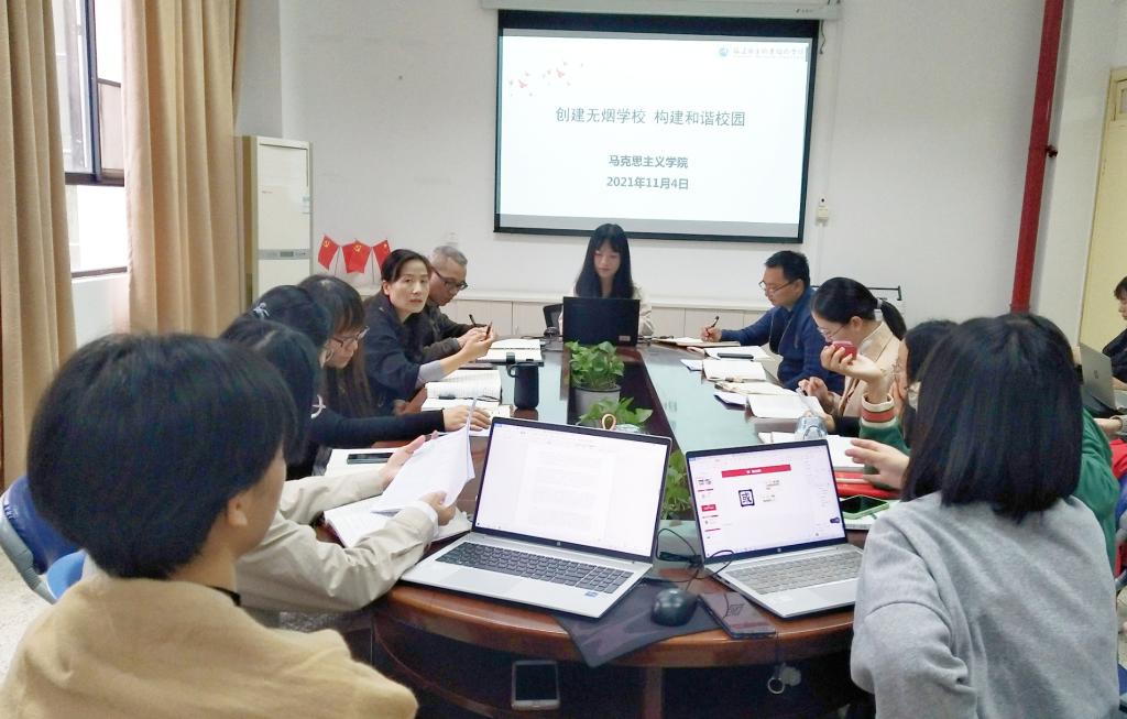 為加強教職工對吸煙危害的了解,積極推進無煙校園創(chuàng)建工作,2021年11月4日上午,馬克思主義學院在107會議室開展禁煙學習宣傳活動。