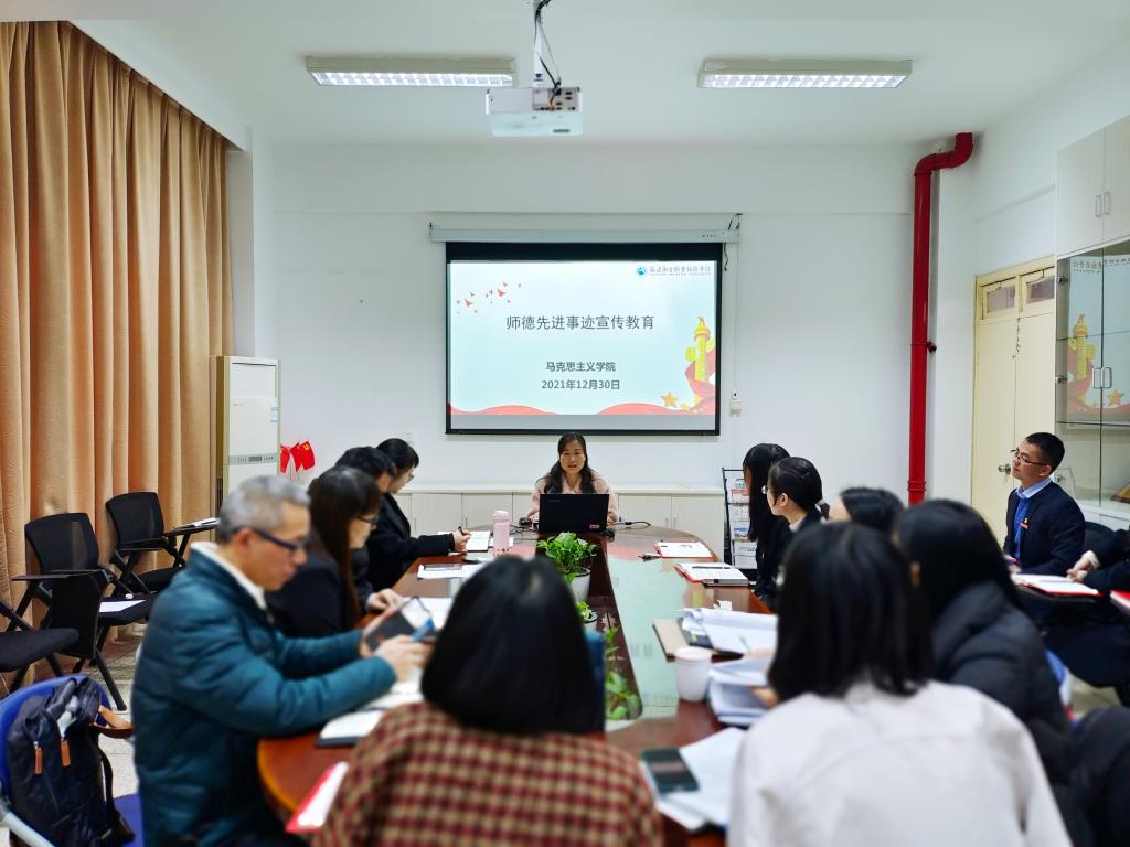 為加強(qiáng)師德師風(fēng)建設(shè),增強(qiáng)教師的立德樹人責(zé)任感與使命感。2021年12月30日上午,馬克思主義學(xué)院在會議室召開了師德先進(jìn)事跡學(xué)習(xí)交流會。會議由馬克思主義學(xué)院院長熊美蘭主持,馬克思主義學(xué)院全體教師出席本次活動。