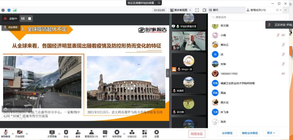 2022年3月11日上午,形勢與政策教研室于騰訊會議開展集體備課暨師德師風(fēng)教育活動。本次活動由教研室主任鄭冰老師主持,承擔(dān)形勢與政策課程教學(xué)任務(wù)的教師共同參加。此次活動還安排新教師試講,以提升新進教師業(yè)務(wù)能力,保證教學(xué)質(zhì)量。