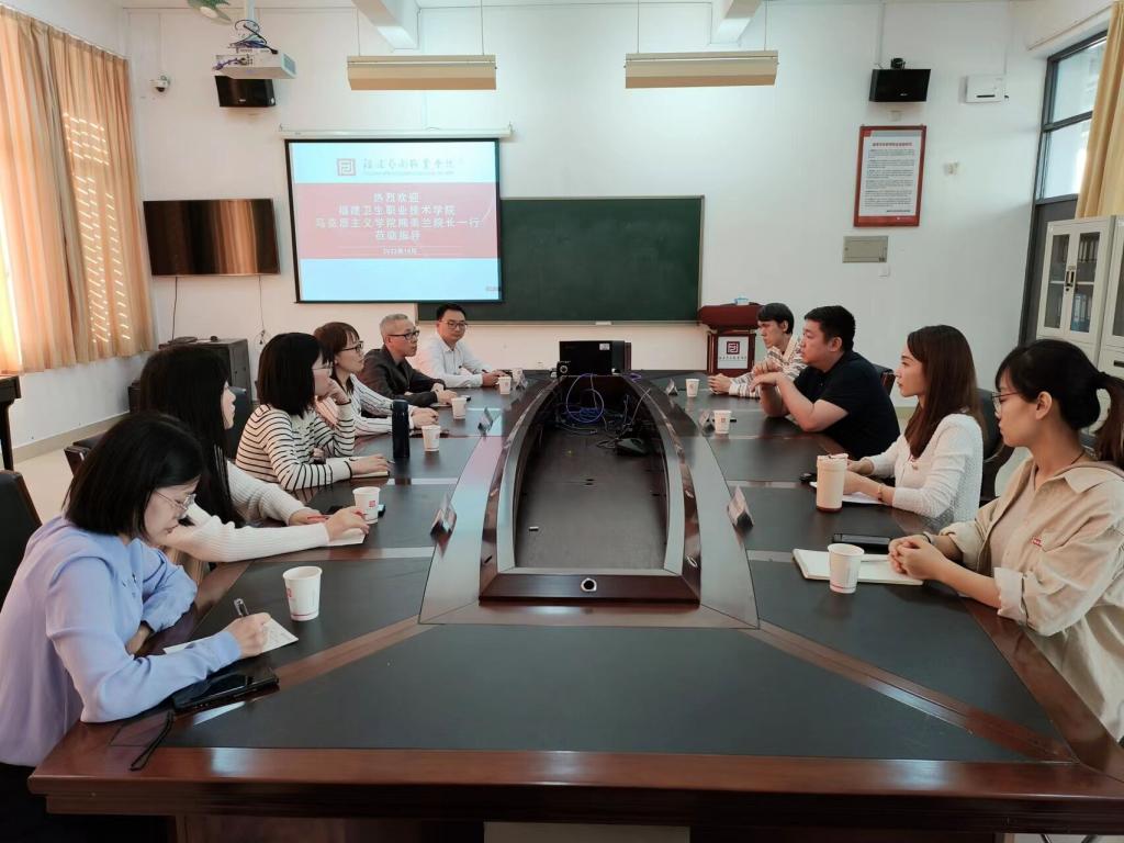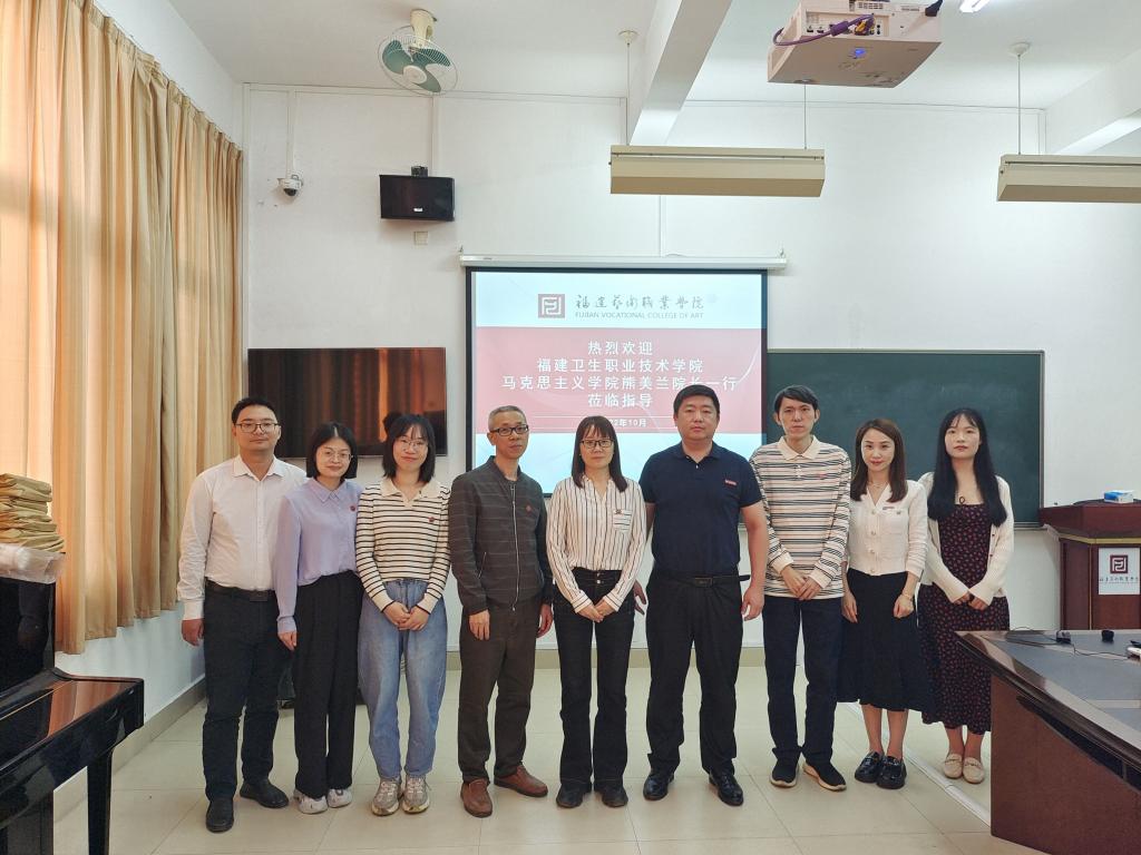 2022年10月21日下午,馬克思主義學(xué)院一行6人在熊美蘭院長(zhǎng)的帶領(lǐng)下,前往福建藝術(shù)職業(yè)學(xué)院馬克思主義學(xué)院參觀學(xué)習(xí),受到了鄭元?jiǎng)P院長(zhǎng)的熱情接待。此行的主要目的是學(xué)習(xí)他們?cè)谑〖?jí)雙帶頭人教師黨支部建設(shè)、教學(xué)科研和課程建設(shè)等方面的成功經(jīng)驗(yàn)。