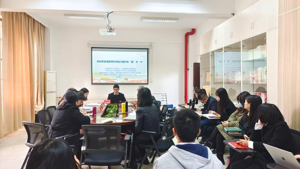 為堅持以習(xí)近平新時代中國特色社會主義思想為指導(dǎo),全面貫徹落實黨的二十大精神,深入實施《中共中央關(guān)于加快構(gòu)建中國特色哲學(xué)社會科學(xué)的意見》,堅持正確的政治方向、價值取向和學(xué)術(shù)導(dǎo)向。2024年1月18日,我校馬克思主義學(xué)院邀請福建醫(yī)科大學(xué)馬克思主義學(xué)院林明惠副教授在厚德樓107作題為《高校思政課教師科研能力提升的“道”與“術(shù)”》的專題講座。講座由馬克思主義學(xué)院副院長來朋珍主持,全體思政課教師參加。