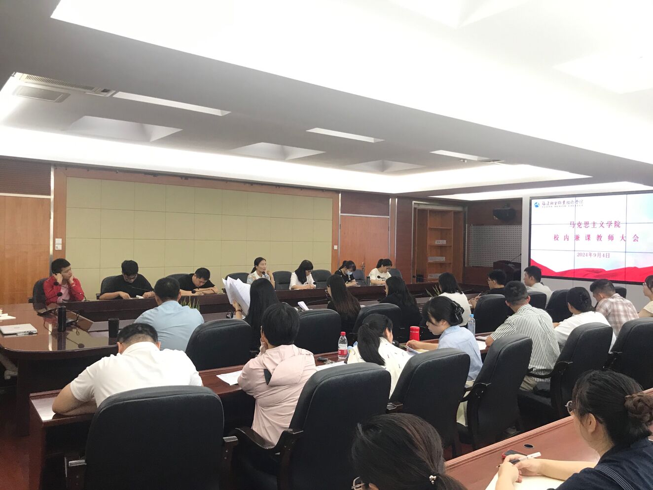 為進一步加強兼職兼課教師的管理,提高人才培養(yǎng)質(zhì)量,促進學院教學質(zhì)量的整體提升,2024年9月4日,馬克思主義學院在厚德樓四樓會議室召開2024-2025學年第一學期校內(nèi)兼職兼課教師教學工作會議。馬克思主義學院院長熊美蘭、副院長來朋珍、教研室主任以及本學期擔任教學任務的校內(nèi)兼職兼課教師等近40人參加了會議,會議由來朋珍主持。