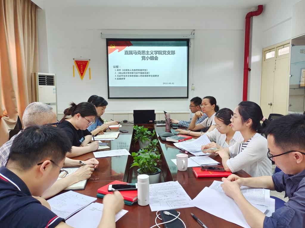 2022年6月2日直屬馬克思主義學(xué)院黨支部第二黨小組在會議室107進行理論學(xué)習,學(xué)習活動由黨小組來朋珍同志主持。本次學(xué)習《論堅持人與自然和諧共生》《閩山閩水物華新——習近平福建足跡》等主要內(nèi)容。